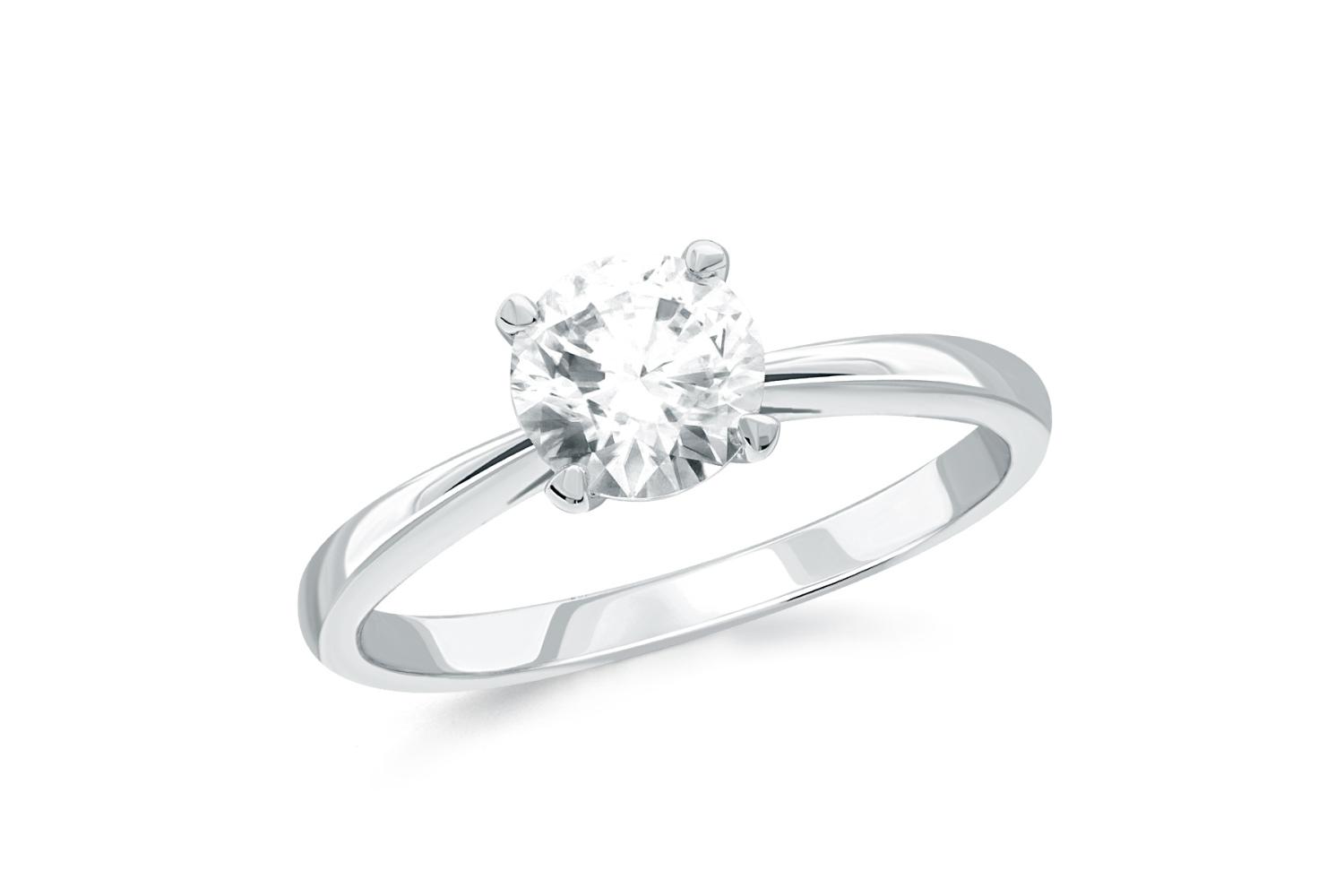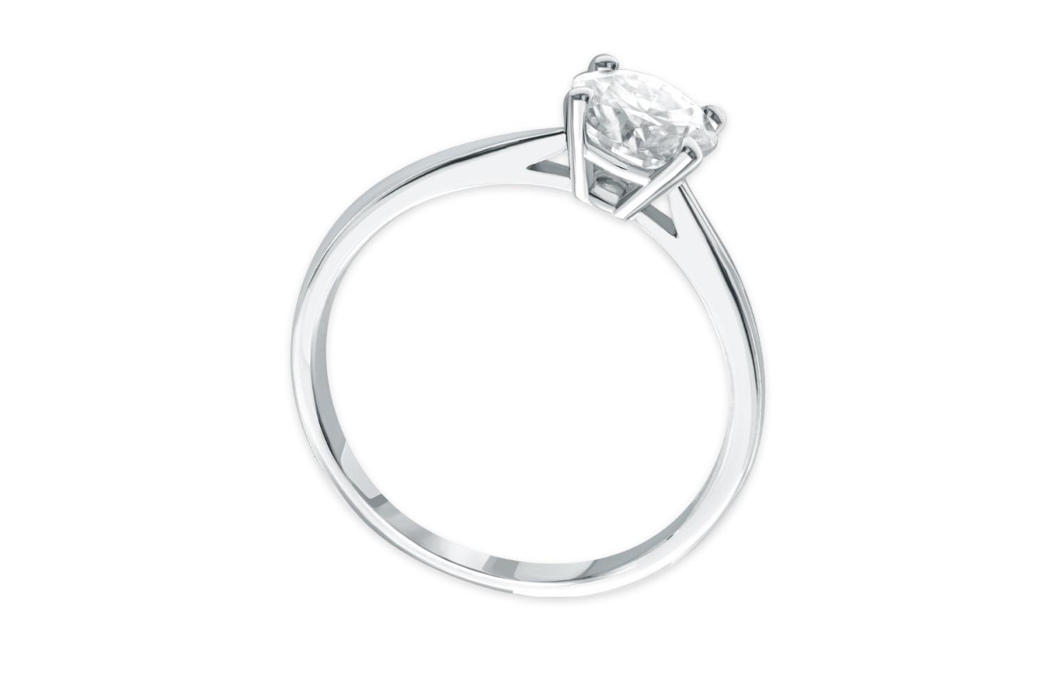 Изящное колечко с муассанитом - классический образец помолвочного кольца. Белоснежный металл создает безупречный фон для сверкающего камня.