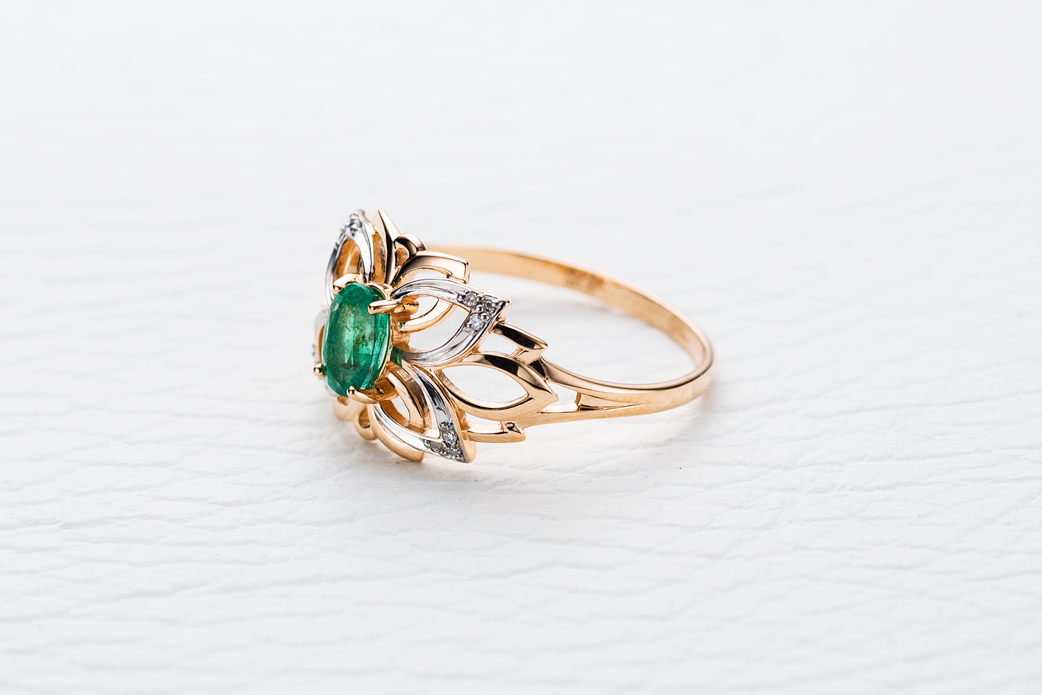 Мастера компании NEWGOLD, приложив всё свое мастерство и искусство, создали для Вас на нашем собственном производстве Кольцо Бабочка из красного золота с изумрудом и 12 бриллиантами.