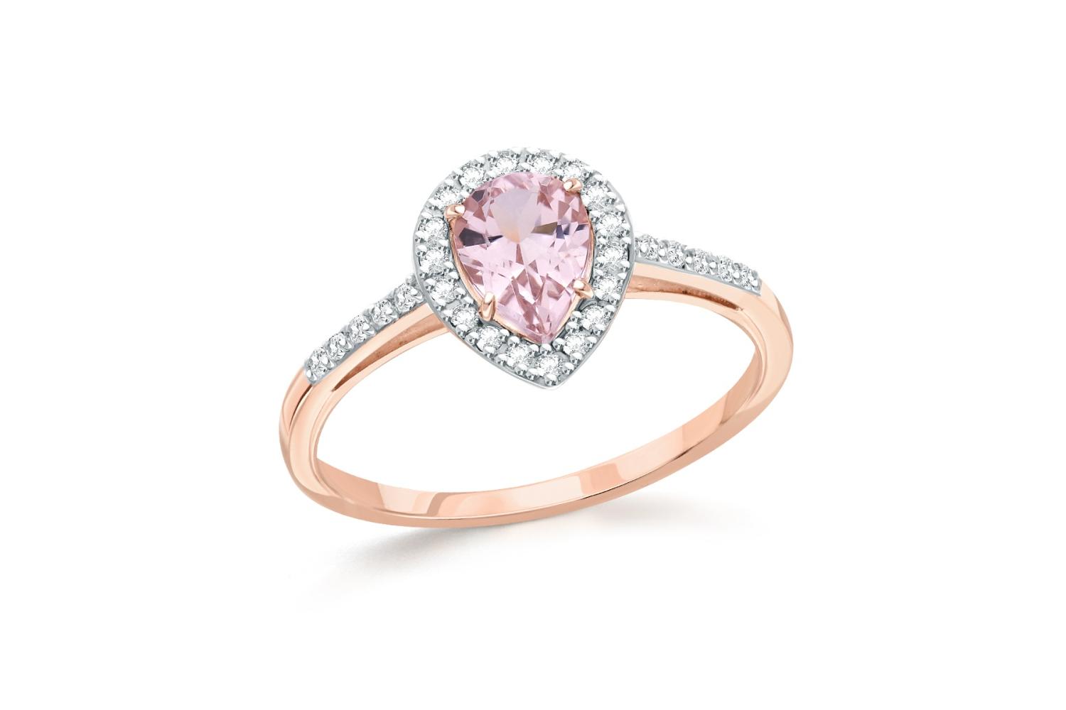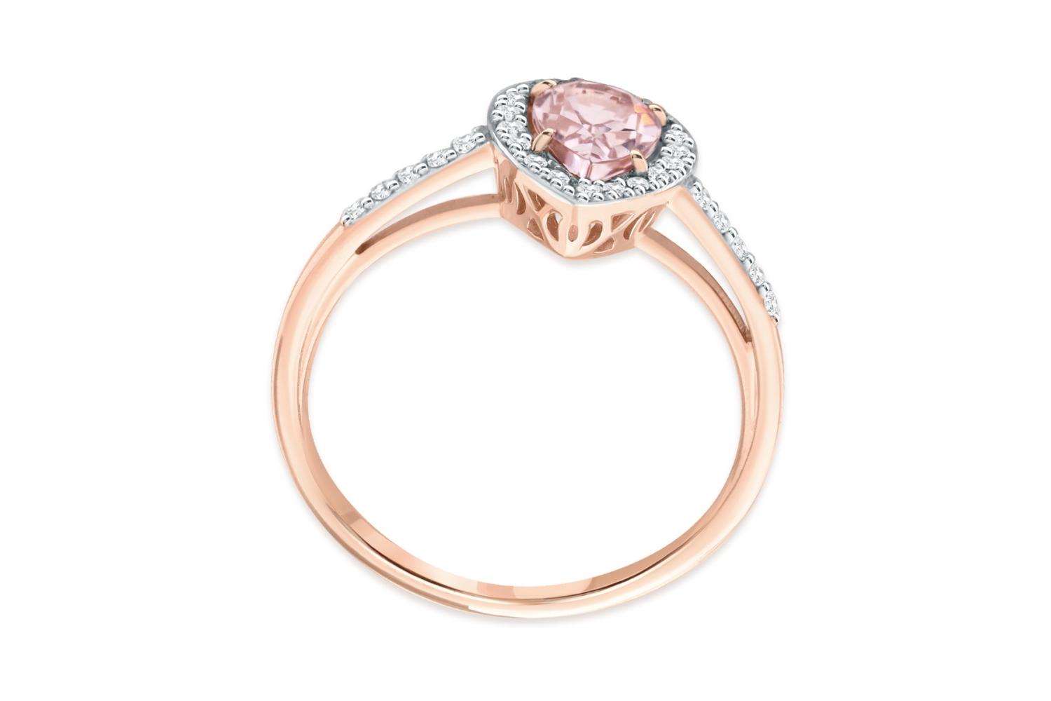 Мастера компании NEWGOLD, приложив всё свое мастерство и искусство, создали для Вас на нашем собственном производстве Кольцо из красного золота с морганитом и 28 фианитами.