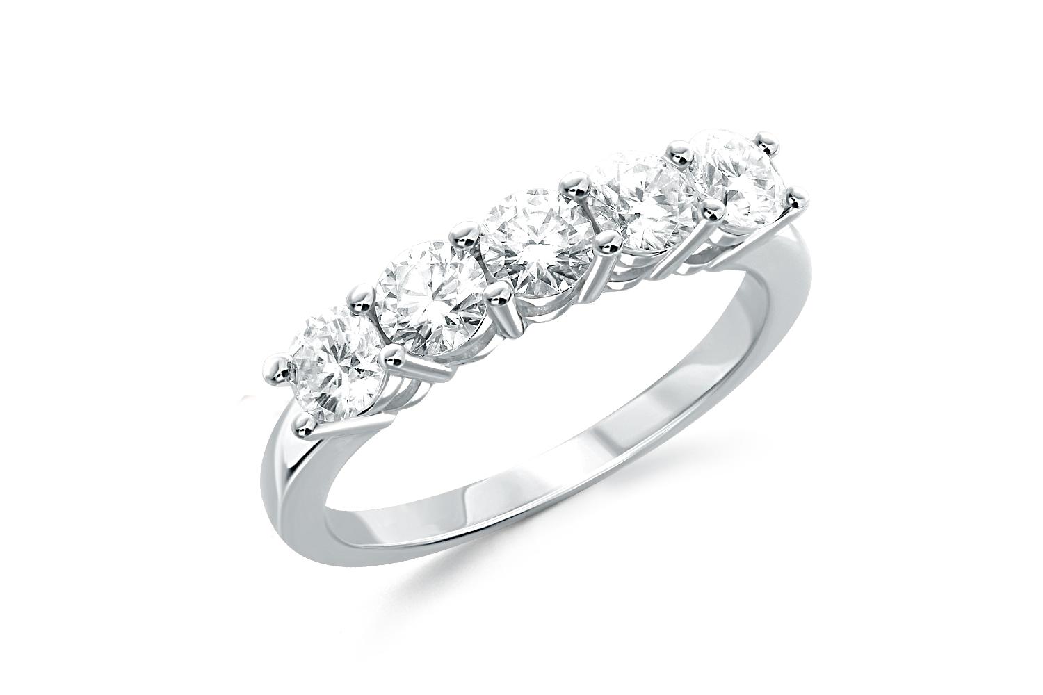 Мастера компании NEWGOLD, приложив всё свое мастерство и искусство, создали для Вас на нашем собственном производстве Кольцо Дорожка из белого золота с 5 фианитами.