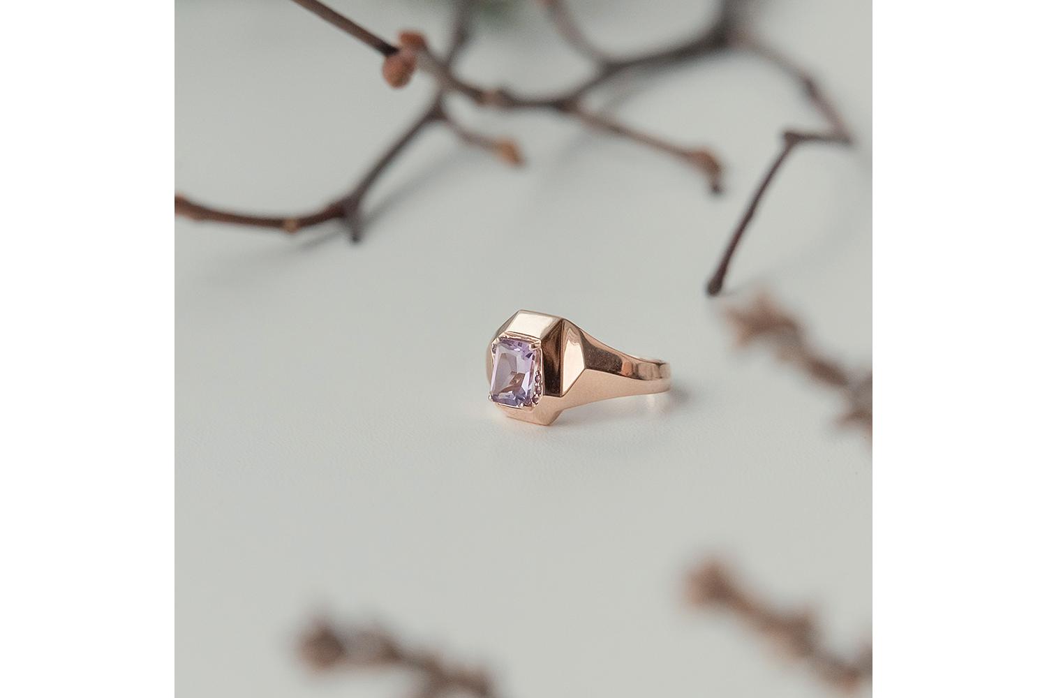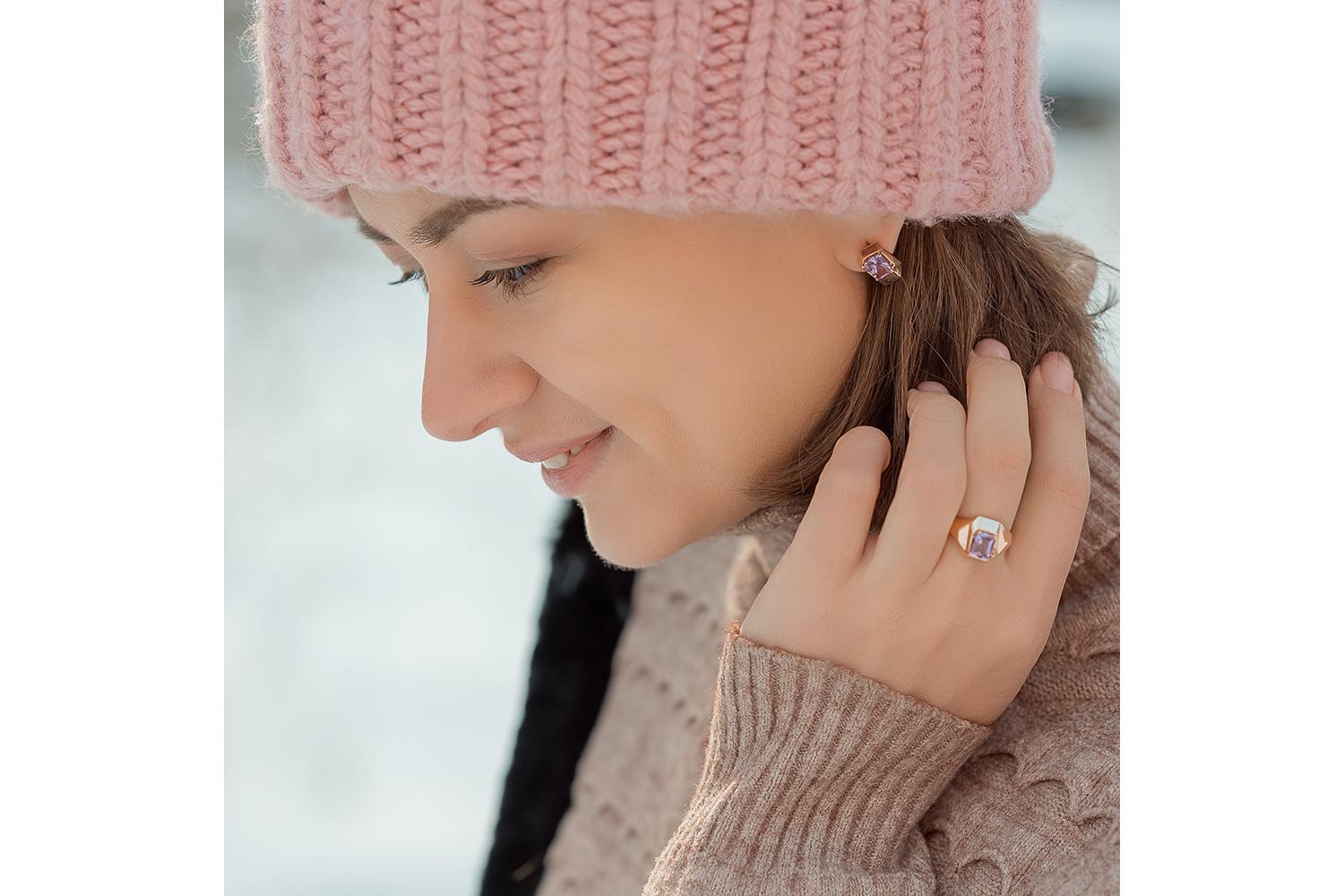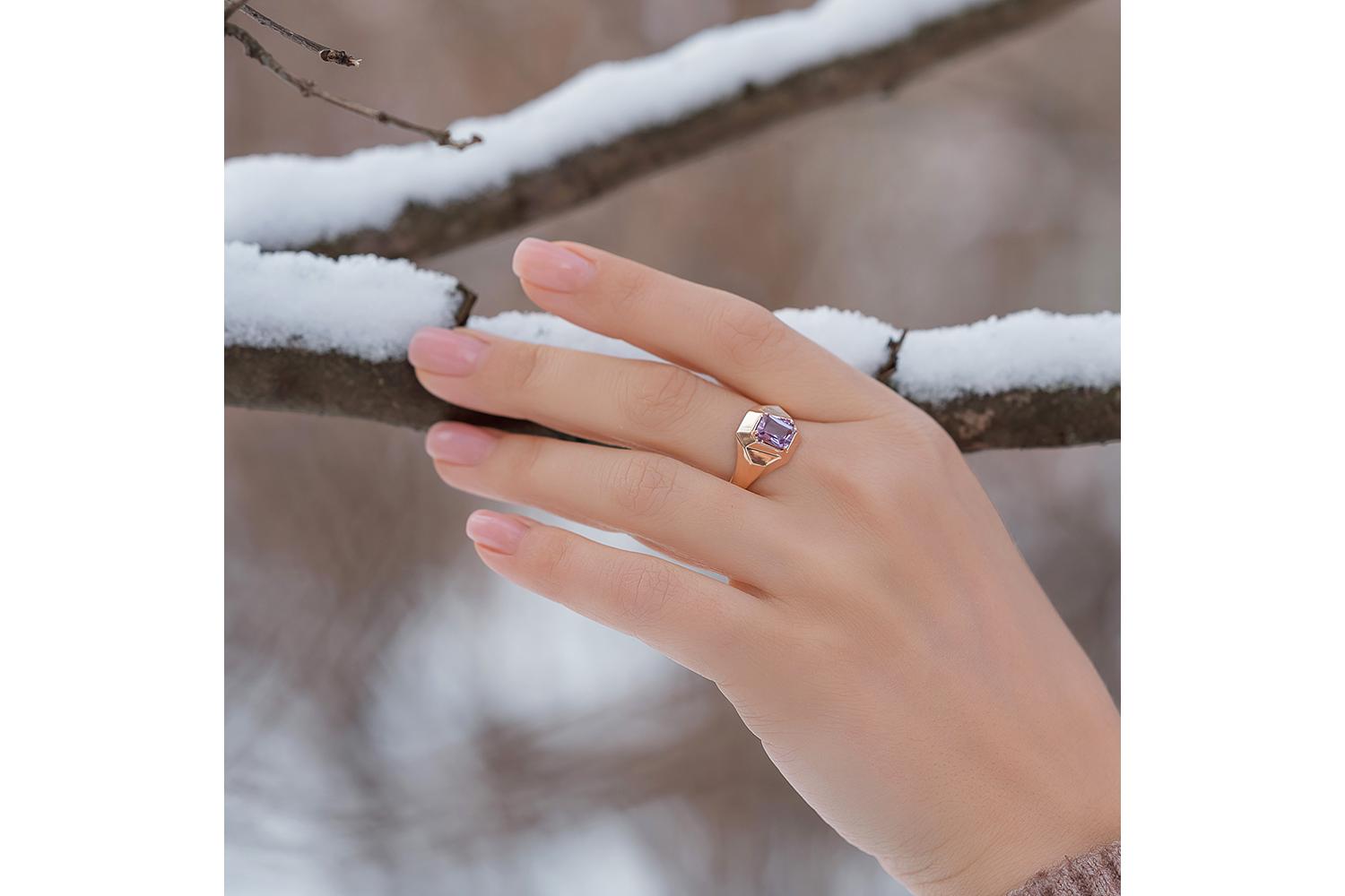 Мастера компании NEWGOLD, приложив всё свое мастерство и искусство, создали для Вас на нашем собственном производстве Кольцо из красного золота с аметистом и 4 фианитами.