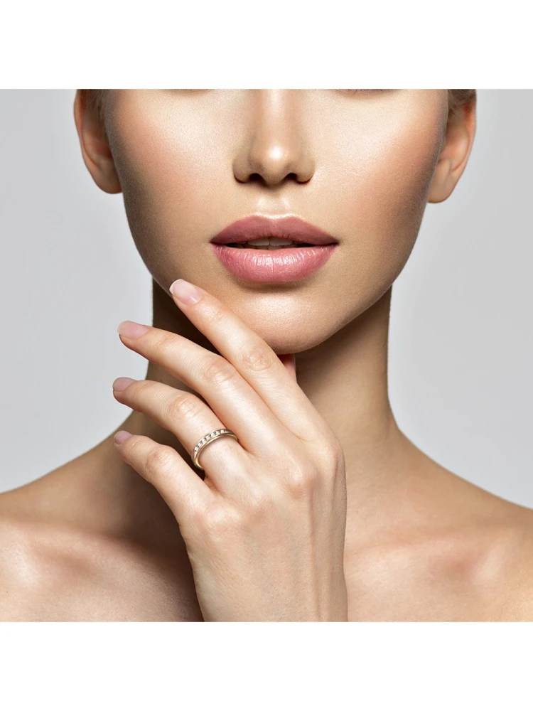 Мастера компании NEWGOLD, приложив всё свое мастерство и искусство, создали для Вас на нашем собственном производстве Кольцо Дорожка из красного золота с 7 муассанитами.
