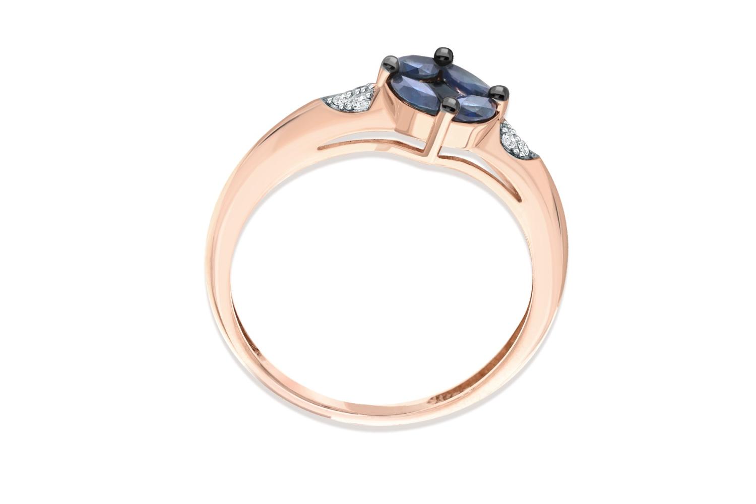 Мастера компании NEWGOLD, приложив всё свое мастерство и искусство, создали для Вас на нашем собственном производстве Кольцо из красного золота с 5 сапфирами и 6 бриллиантами.