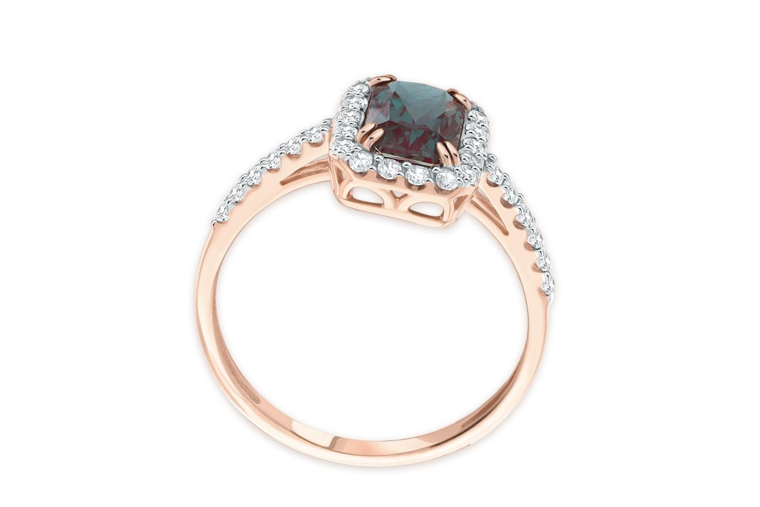 Мастера компании NEWGOLD, приложив всё свое мастерство и искусство, создали для Вас на нашем собственном производстве Кольцо из красного золота с александритом и 30 фианитами.
