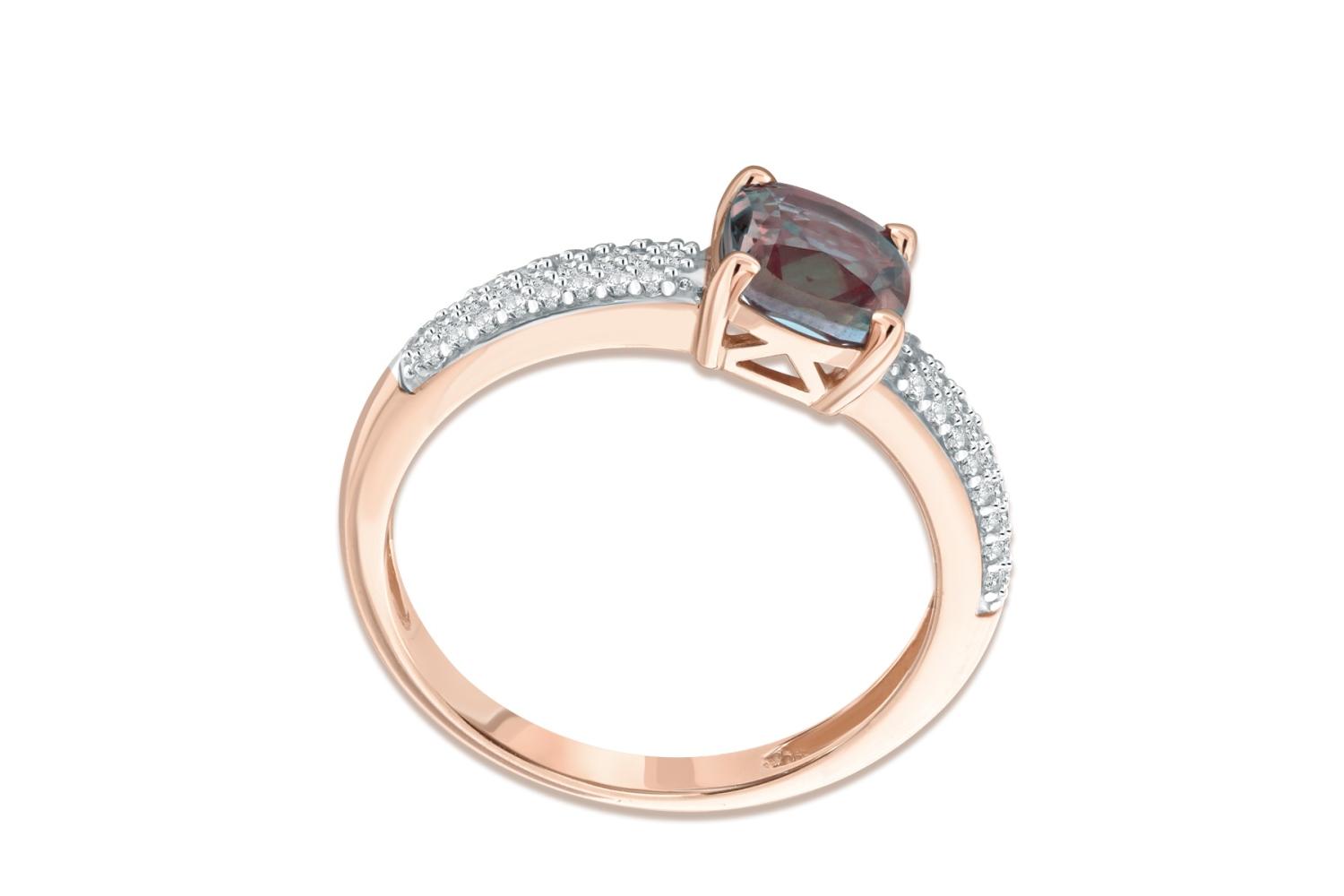 Мастера компании NEWGOLD, приложив всё свое мастерство и искусство, создали для Вас на нашем собственном производстве Кольцо из красного золота с александритом и 50 фианитами.