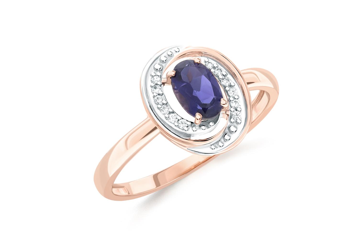 Мастера компании NEWGOLD, приложив всё свое мастерство и искусство, создали для Вас на нашем собственном производстве Кольцо из красного золота с иолитом и 12 фианитами.