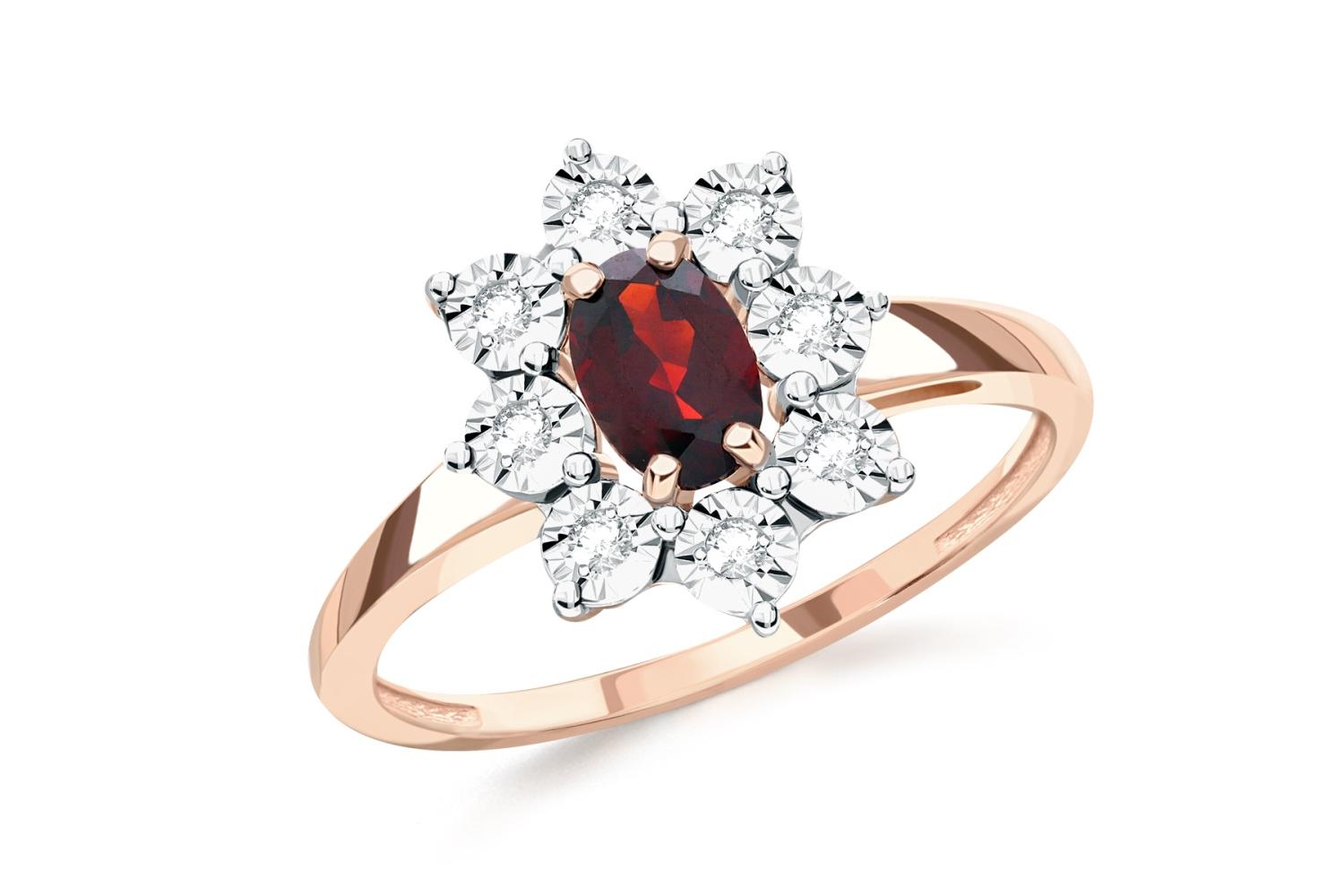 Мастера компании NEWGOLD, приложив всё свое мастерство и искусство, создали для Вас на нашем собственном производстве Кольцо из красного золота с гранатом и 8 бриллиантами.