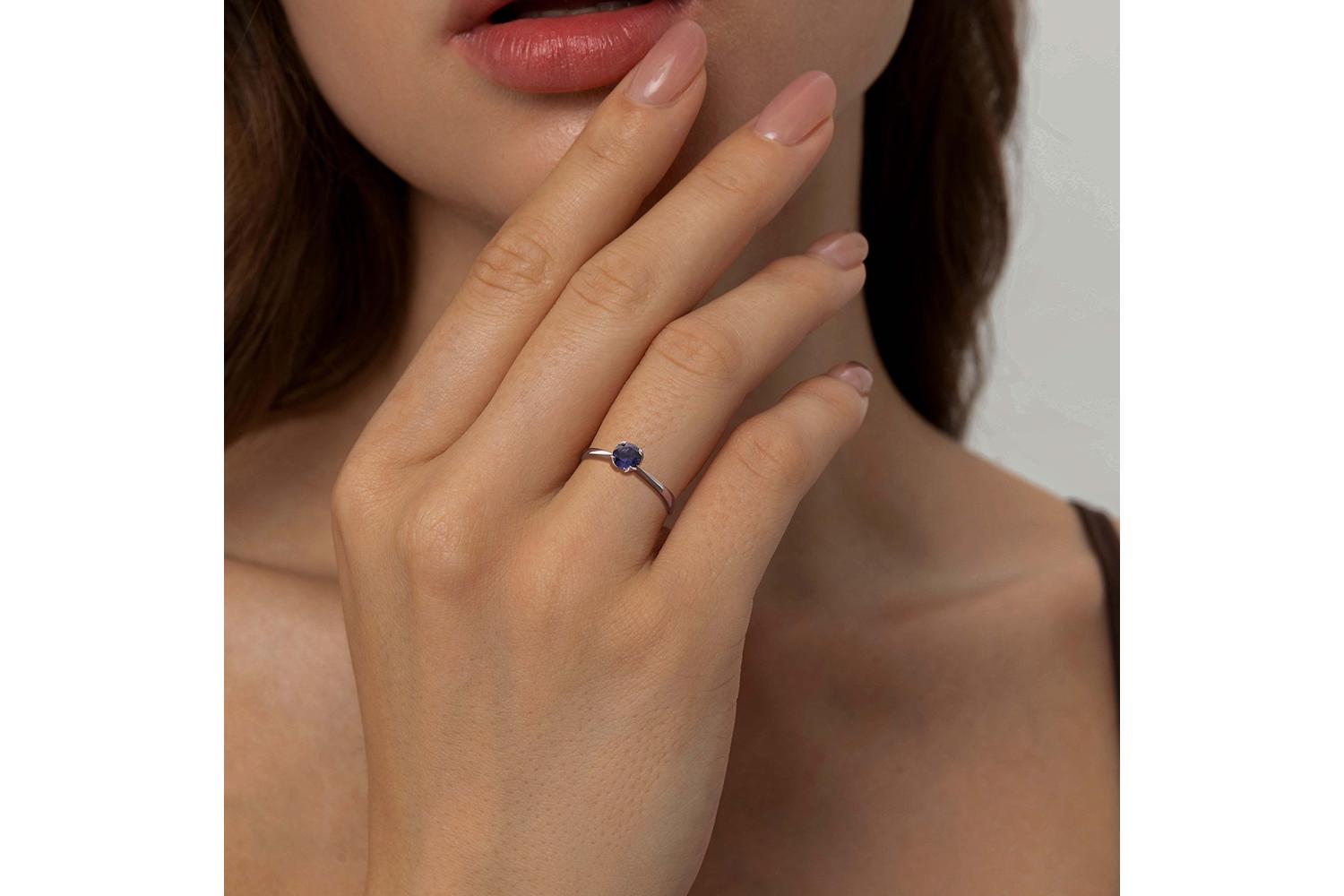Мастера компании NEWGOLD, приложив всё свое мастерство и искусство, создали для Вас на нашем собственном производстве Кольцо из белого золота с иолитом.