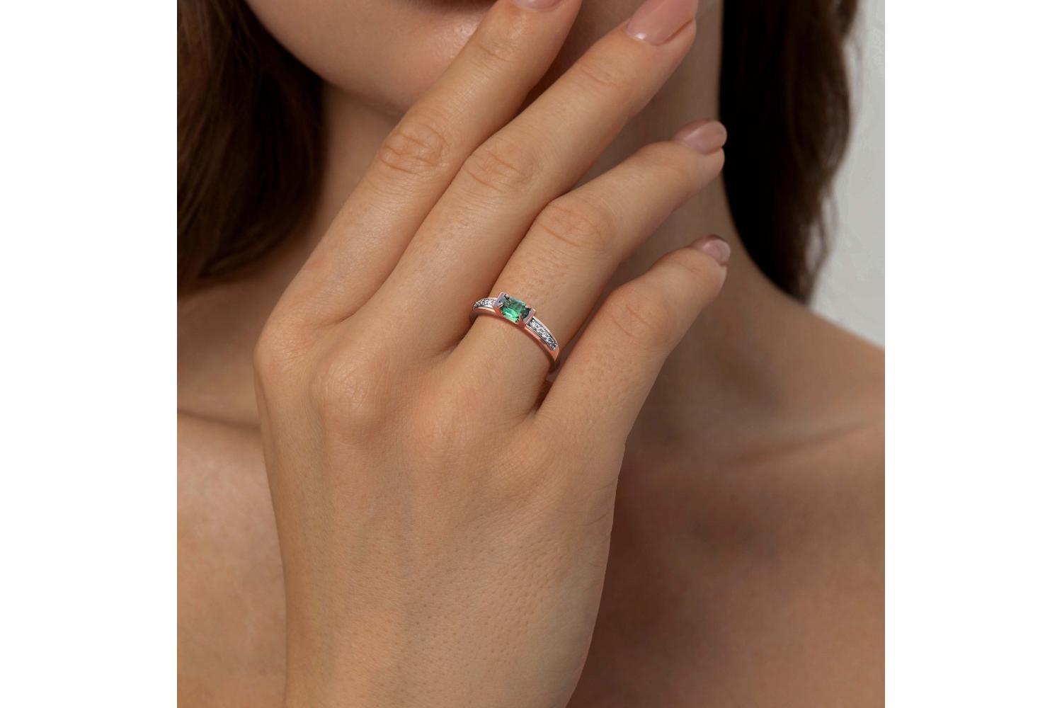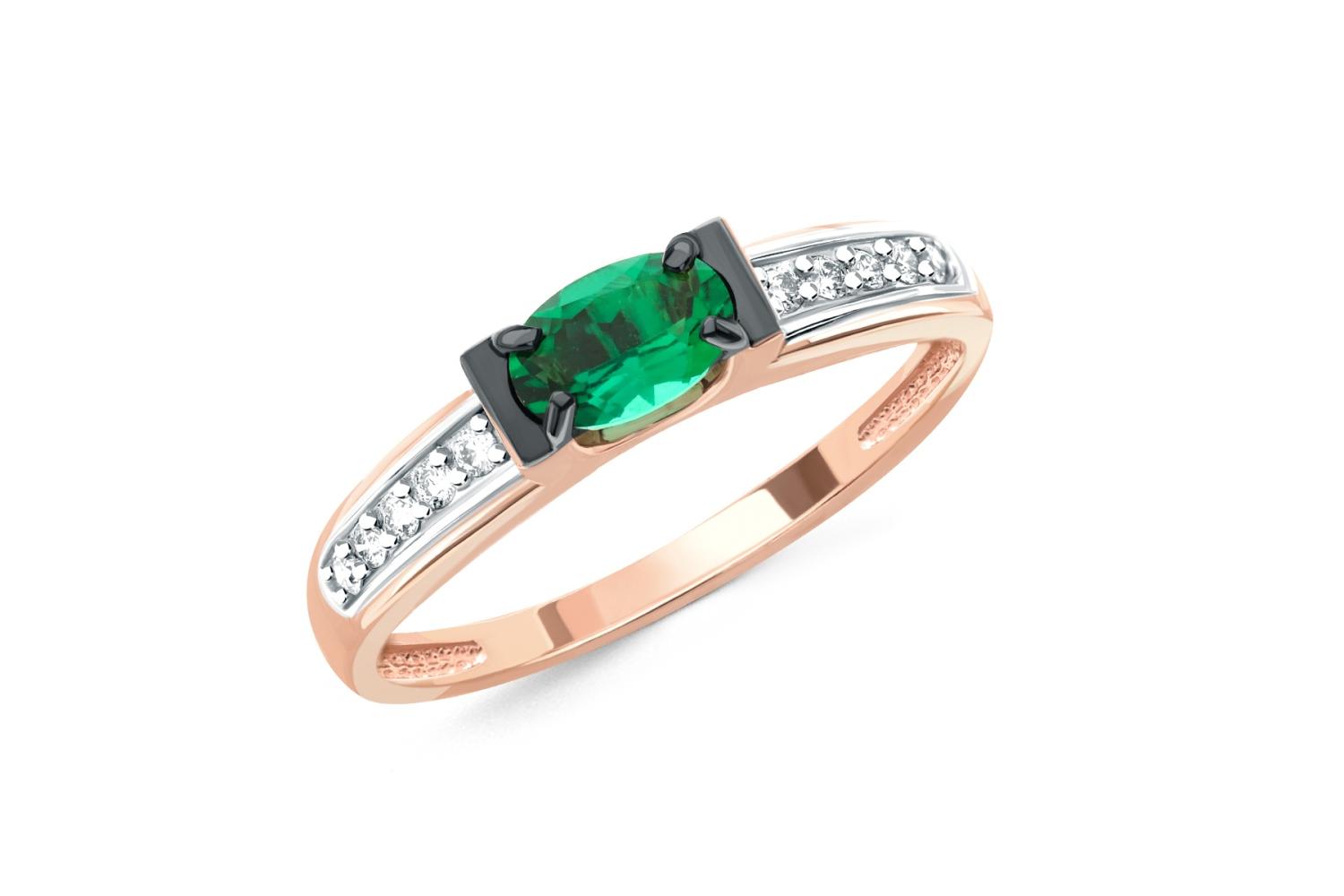 Металл изделия - розовое золото 585 пробы, которое создаёт теплый, нежный фон для контраста с изумрудом. Боковые части шинки декорированы бриллиантами с каждой стороны, они добавляют изысканного сияния и подчеркивают общую композицию.