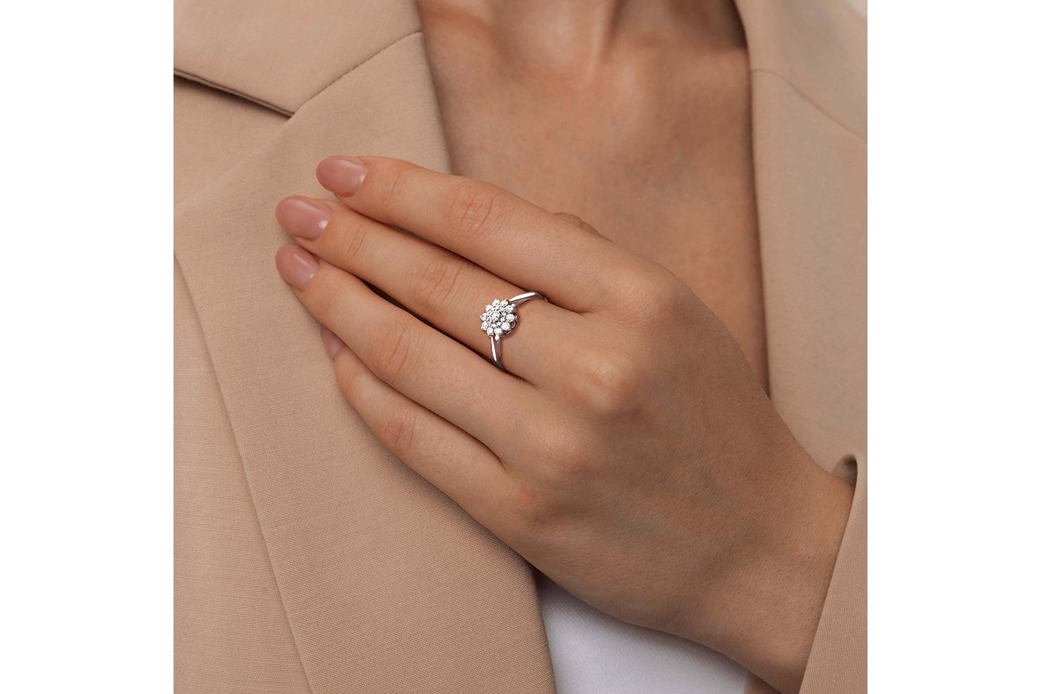 Мастера компании NEWGOLD, приложив всё свое мастерство и искусство, создали для Вас на нашем собственном производстве Кольцо из белого золота с 21 бриллиантами.