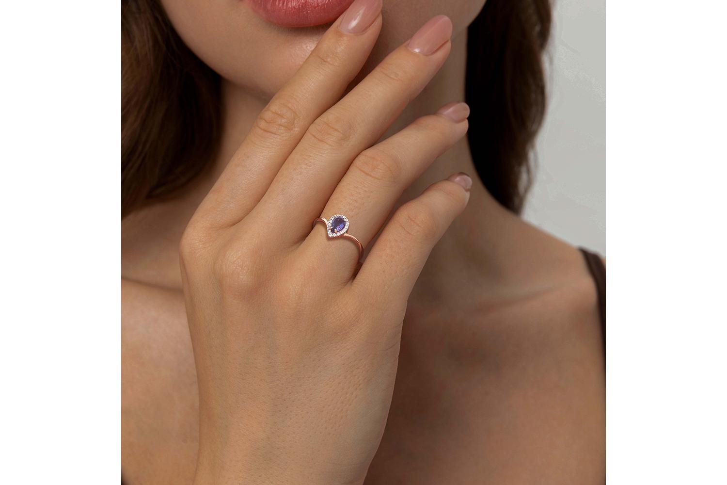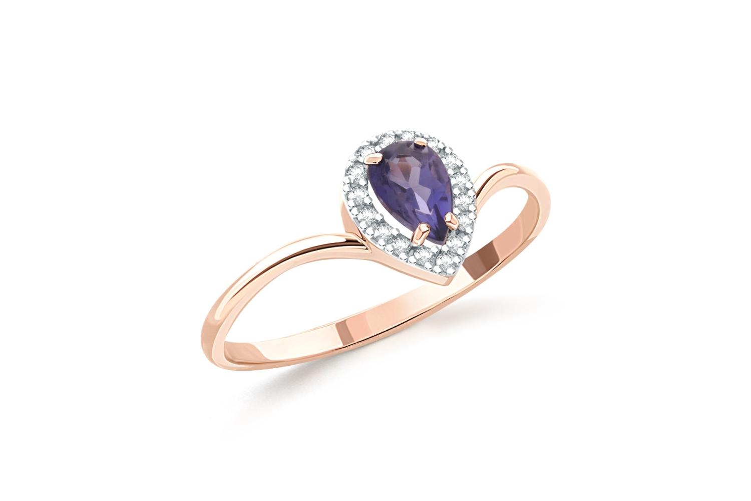 Закажите Кольцо из красного золота с иолитом и 16 фианитами с получением в Москве через курьерскую службу доставки напрямую с нашего производственного склада завода NEWGOLD!