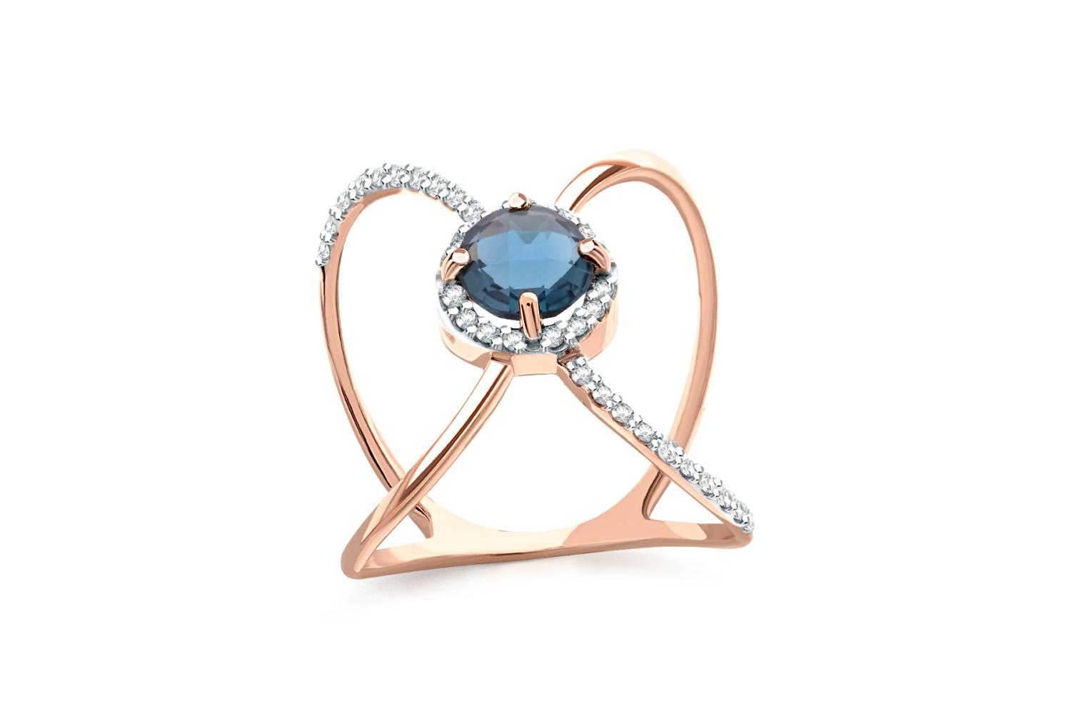 Мастера компании NEWGOLD, приложив всё свое мастерство и искусство, создали для Вас на нашем собственном производстве Кольцо из красного золота с топазом лондон и 36 бриллиантами.