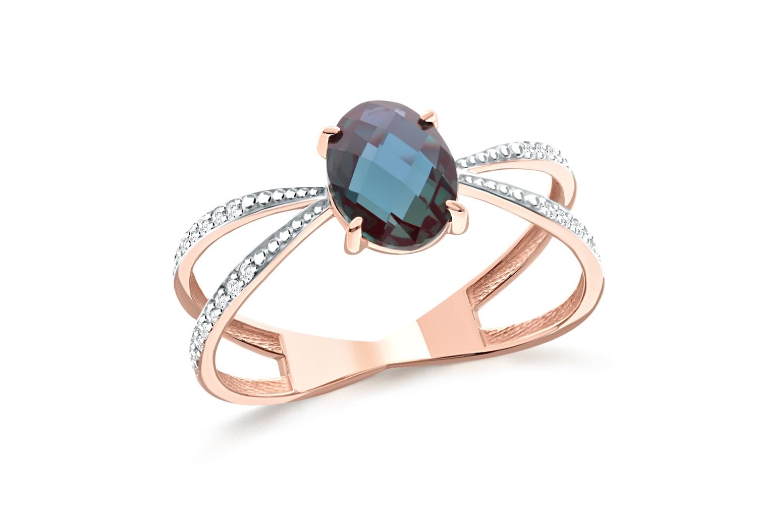 Мастера компании NEWGOLD, приложив всё свое мастерство и искусство, создали для Вас на нашем собственном производстве Кольцо из красного золота с александритом и 28 бриллиантами.