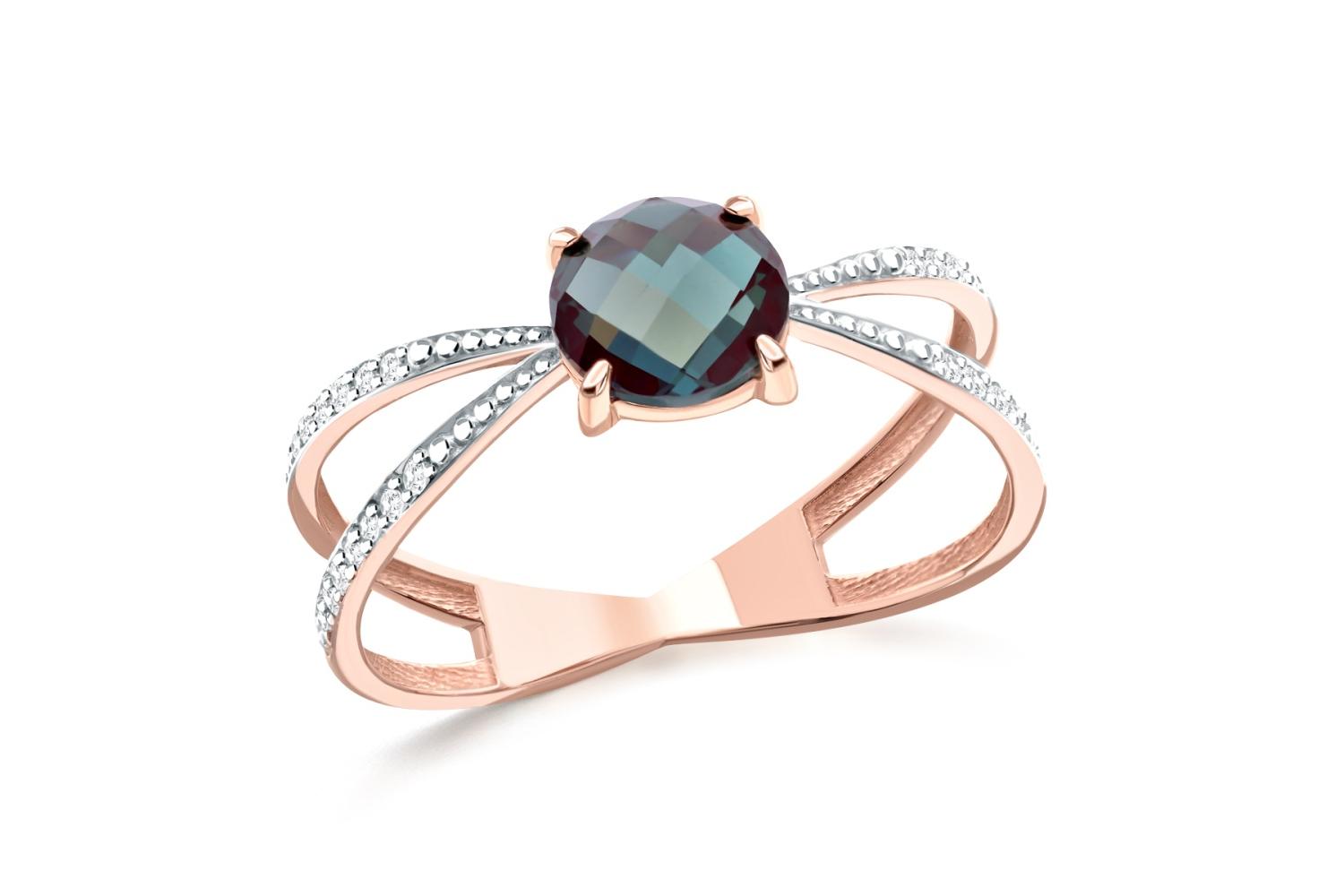 Мастера компании NEWGOLD, приложив всё свое мастерство и искусство, создали для Вас на нашем собственном производстве Кольцо из красного золота с александритом и 28 бриллиантами.