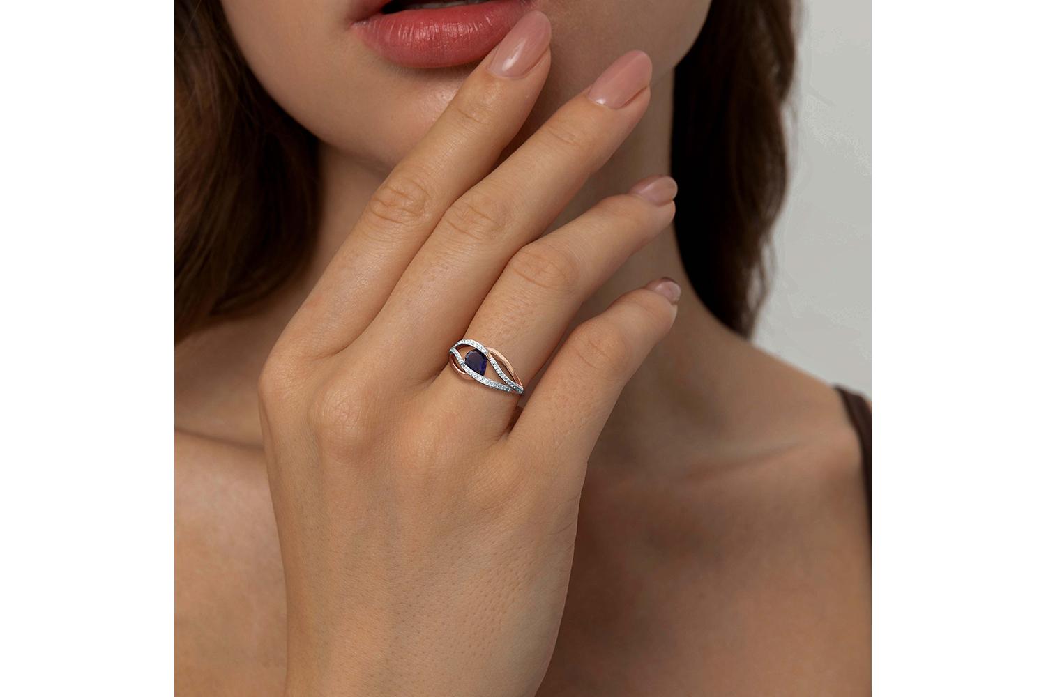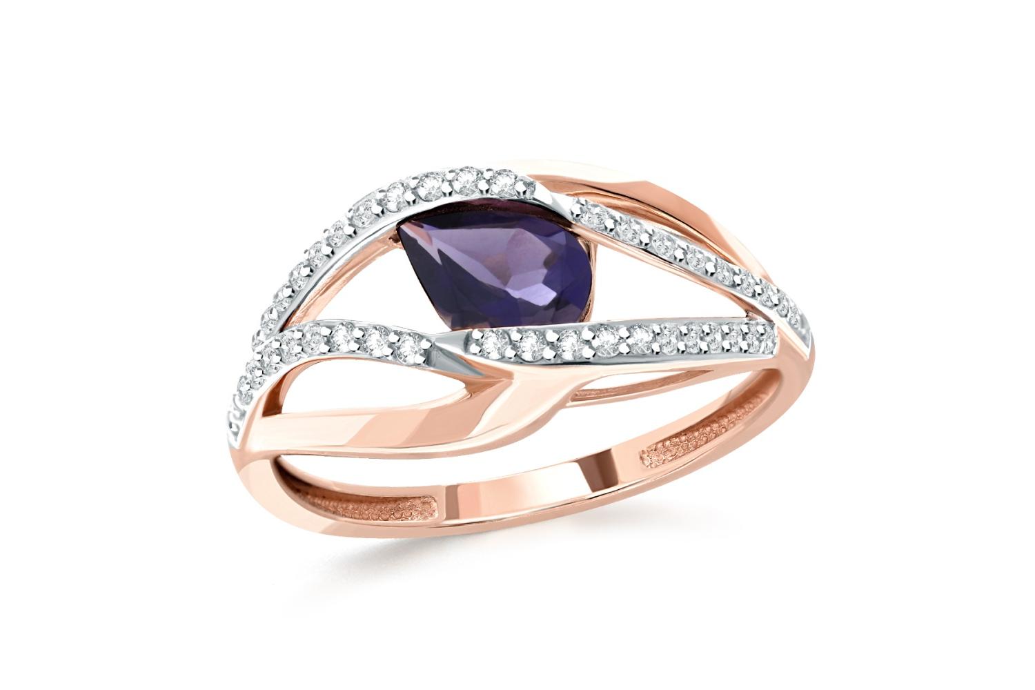 Мастера компании NEWGOLD, приложив всё свое мастерство и искусство, создали для Вас на нашем собственном производстве Кольцо из красного золота с иолитом и 42 фианитами.