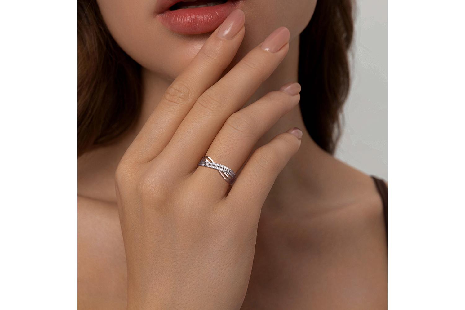 Мастера компании NEWGOLD, приложив всё свое мастерство и искусство, создали для Вас на нашем собственном производстве Кольцо из белого золота с 22 фианитами.