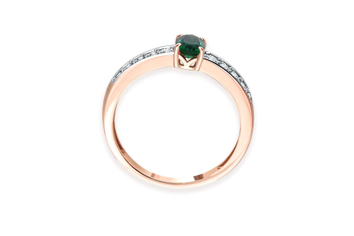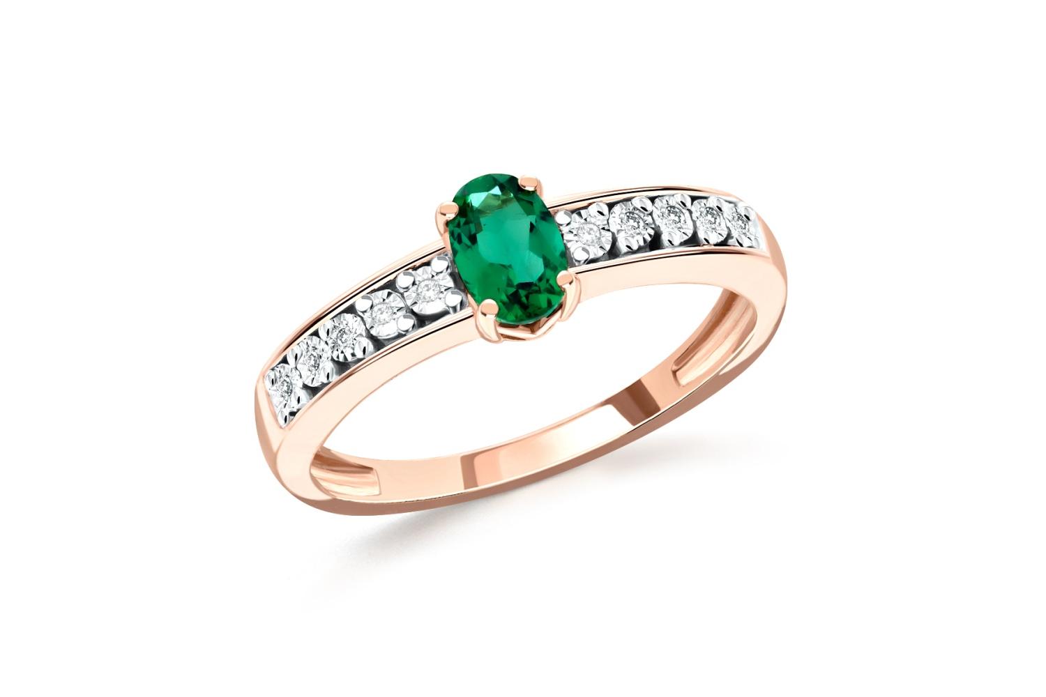 Изумруд Гт искусственный, количество 1 шт., огранка овал, размер 6ˣ4 ; Бриллиант, количество 10 шт., огранка Кр-17, размер 1 мм, цвет 2, чистота 2, вес 0,04 карат.