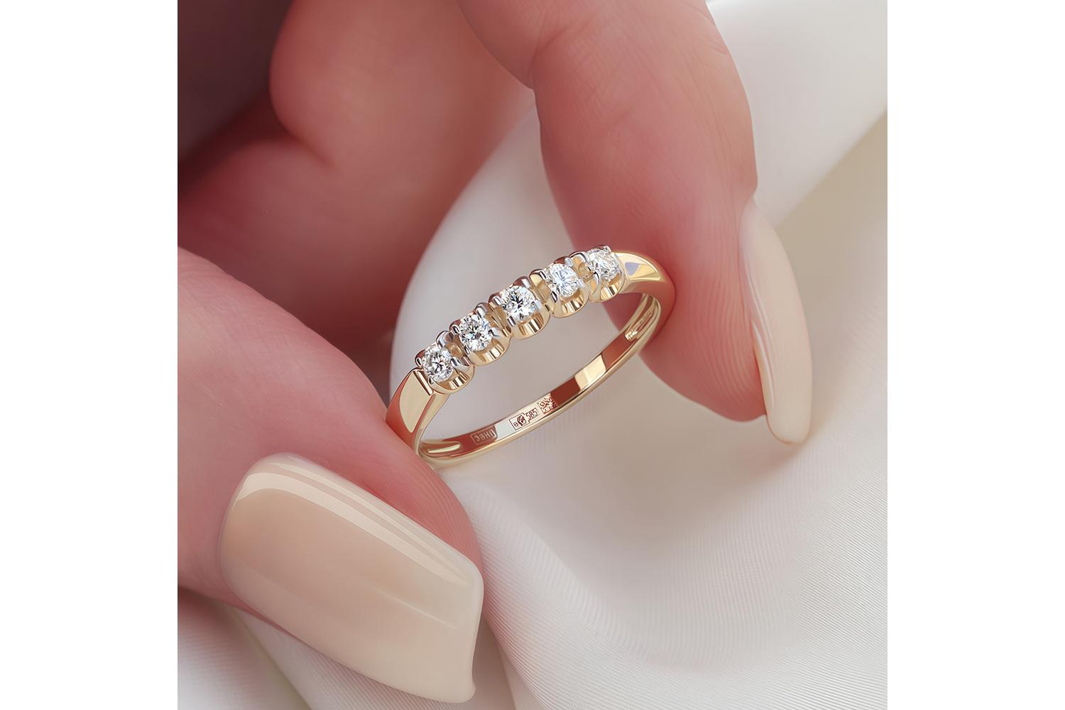 Мастера компании NEWGOLD, приложив всё свое мастерство и искусство, создали для Вас на нашем собственном производстве Кольцо Дорожка из красного золота с 5 бриллиантами.