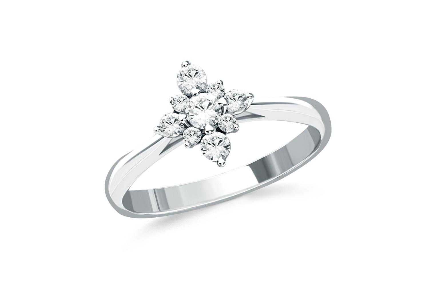 Мастера компании NEWGOLD, приложив всё свое мастерство и искусство, создали для Вас на нашем собственном производстве Кольцо из белого золота с 9 фианитами.