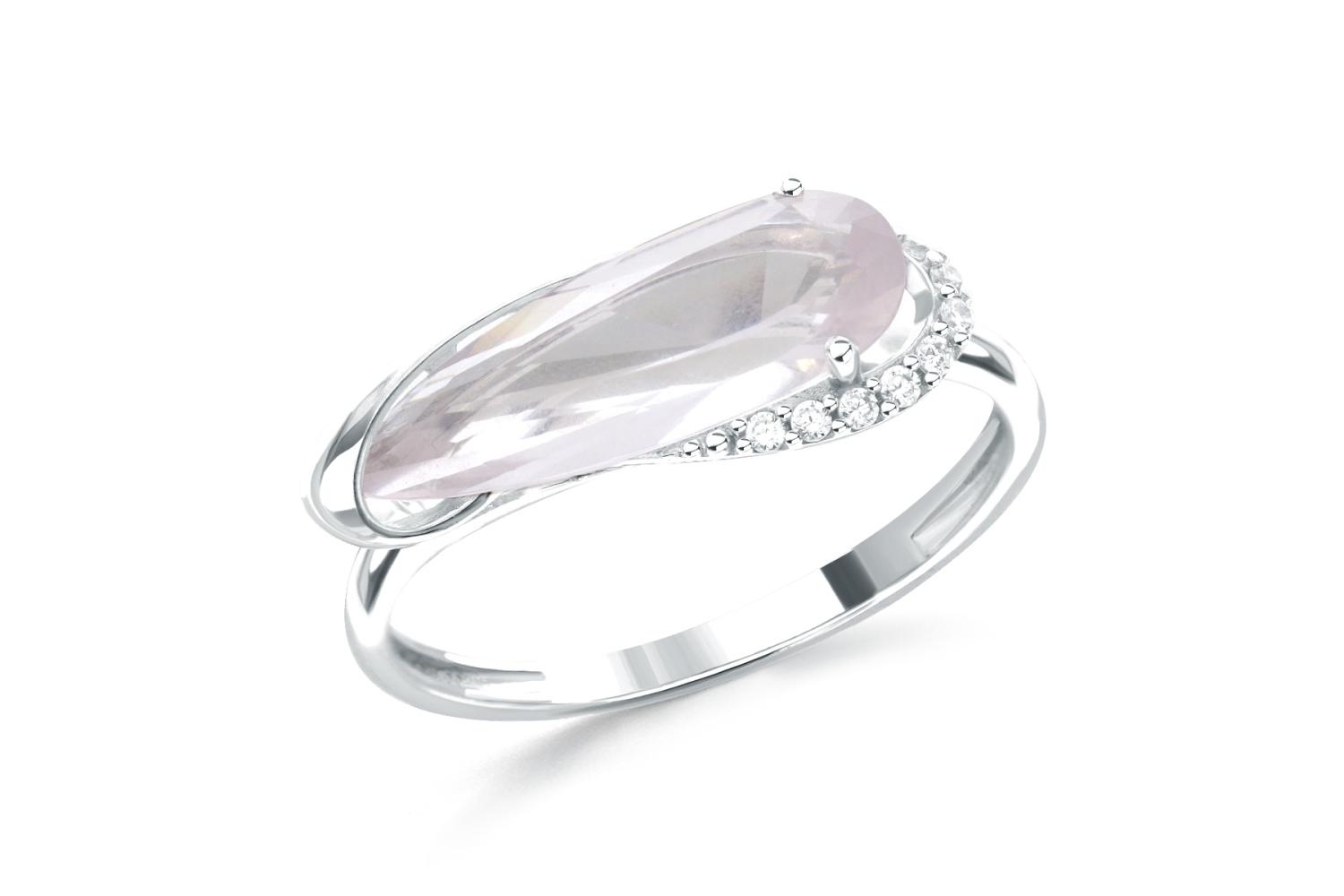Мастера компании NEWGOLD, приложив всё свое мастерство и искусство, создали для Вас на нашем собственном производстве Кольцо из белого золота с кварцем и 9 фианитами.