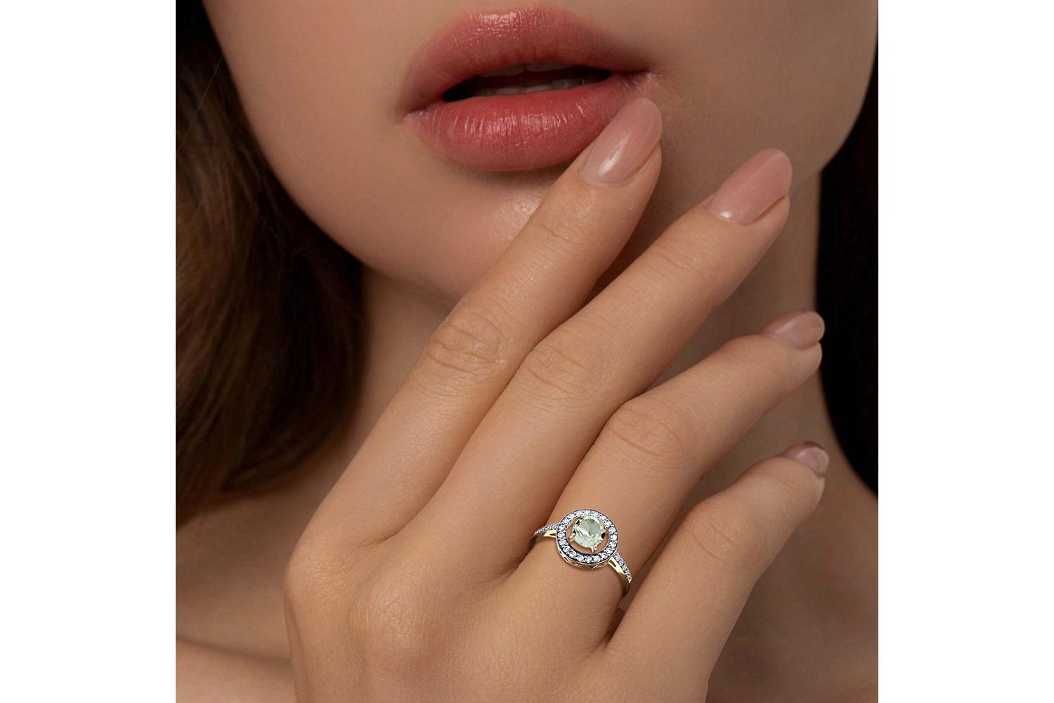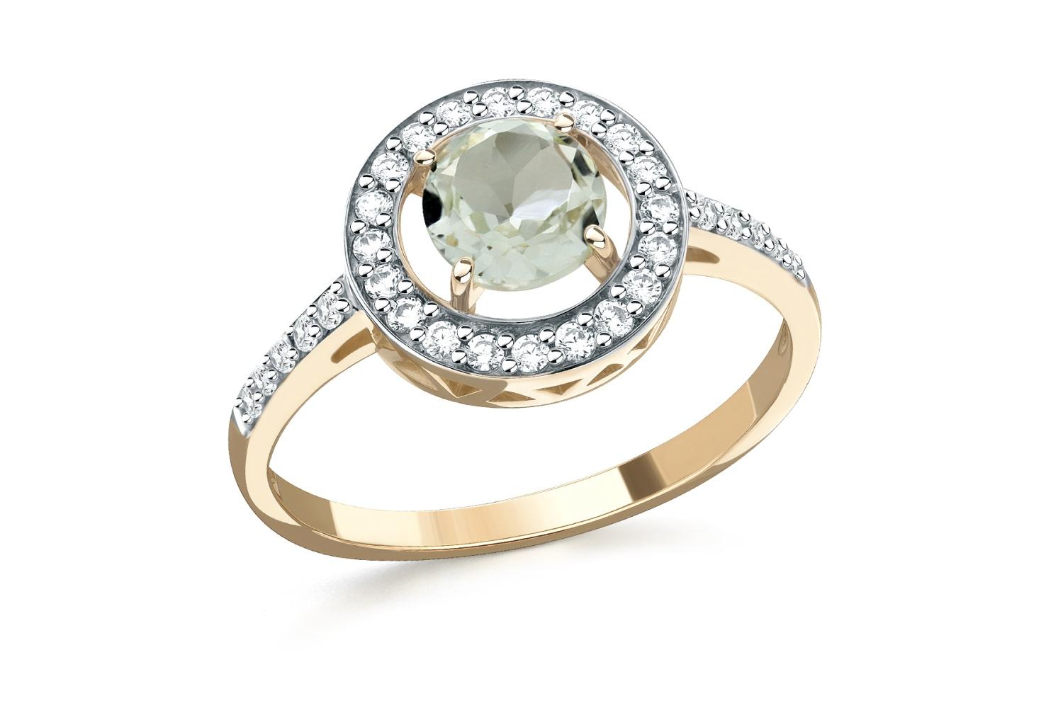 Аметист зеленый натуральный, количество 1 шт., огранка круг, размер 6 мм ; Фианит б/цв, количество 30 шт., огранка круг, размер 1,25 мм