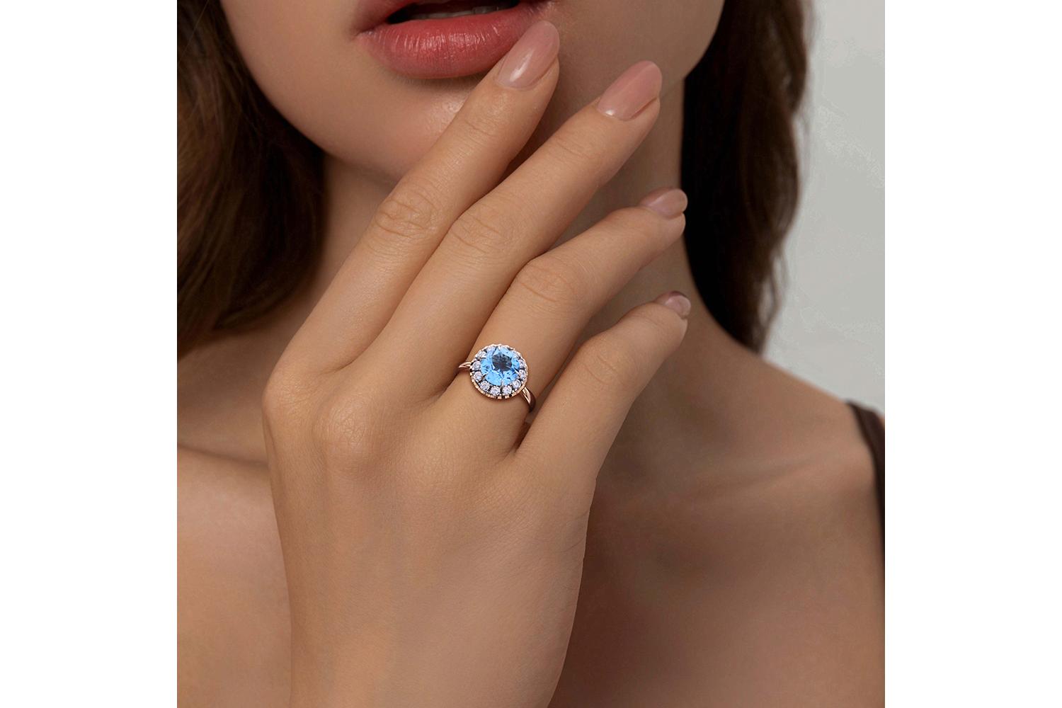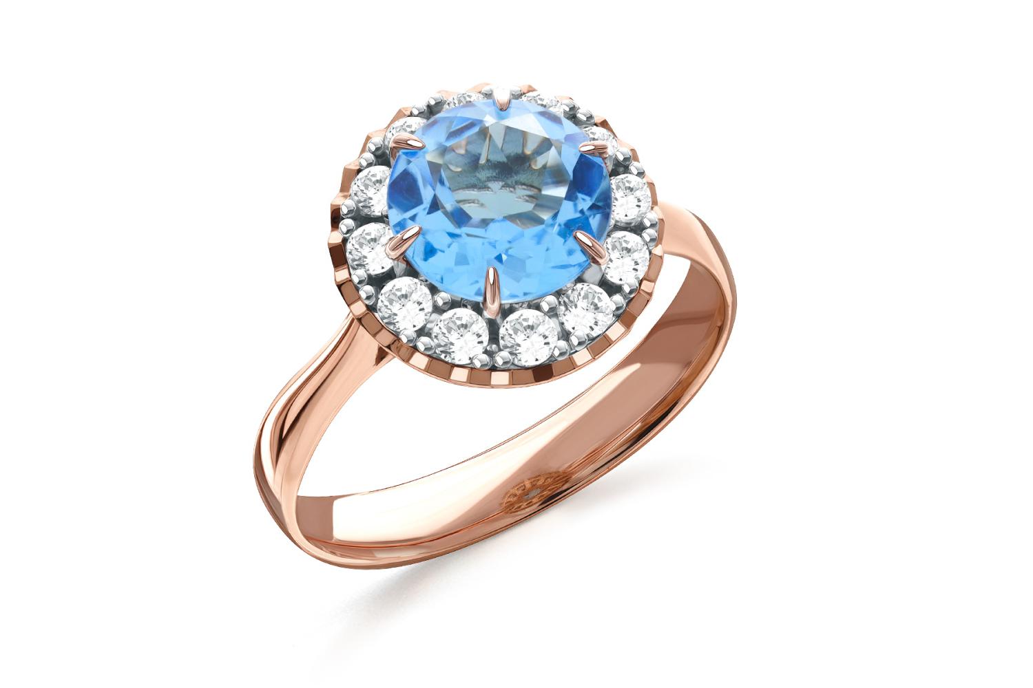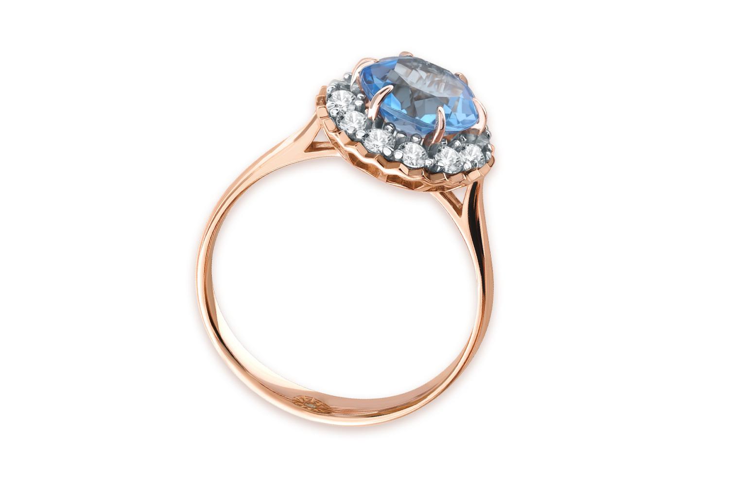 Мастера компании NEWGOLD, приложив всё свое мастерство и искусство, создали для Вас на нашем собственном производстве Кольцо из красного золота с топазом swiss и 12 фианитами.