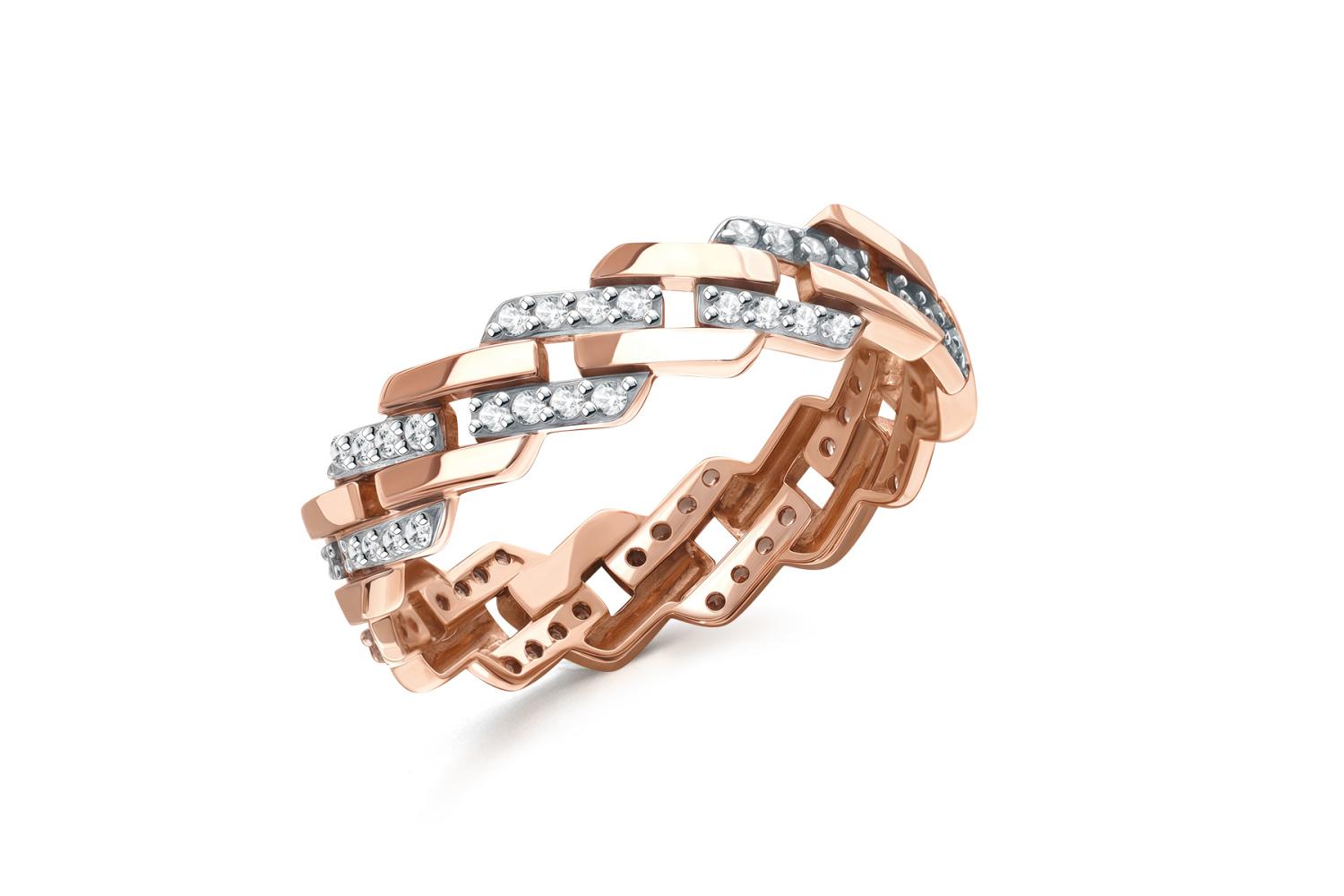 Мастера компании NEWGOLD, приложив всё свое мастерство и искусство, создали для Вас на нашем собственном производстве Кольцо Дорожка из красного золота с 64 фианитами.