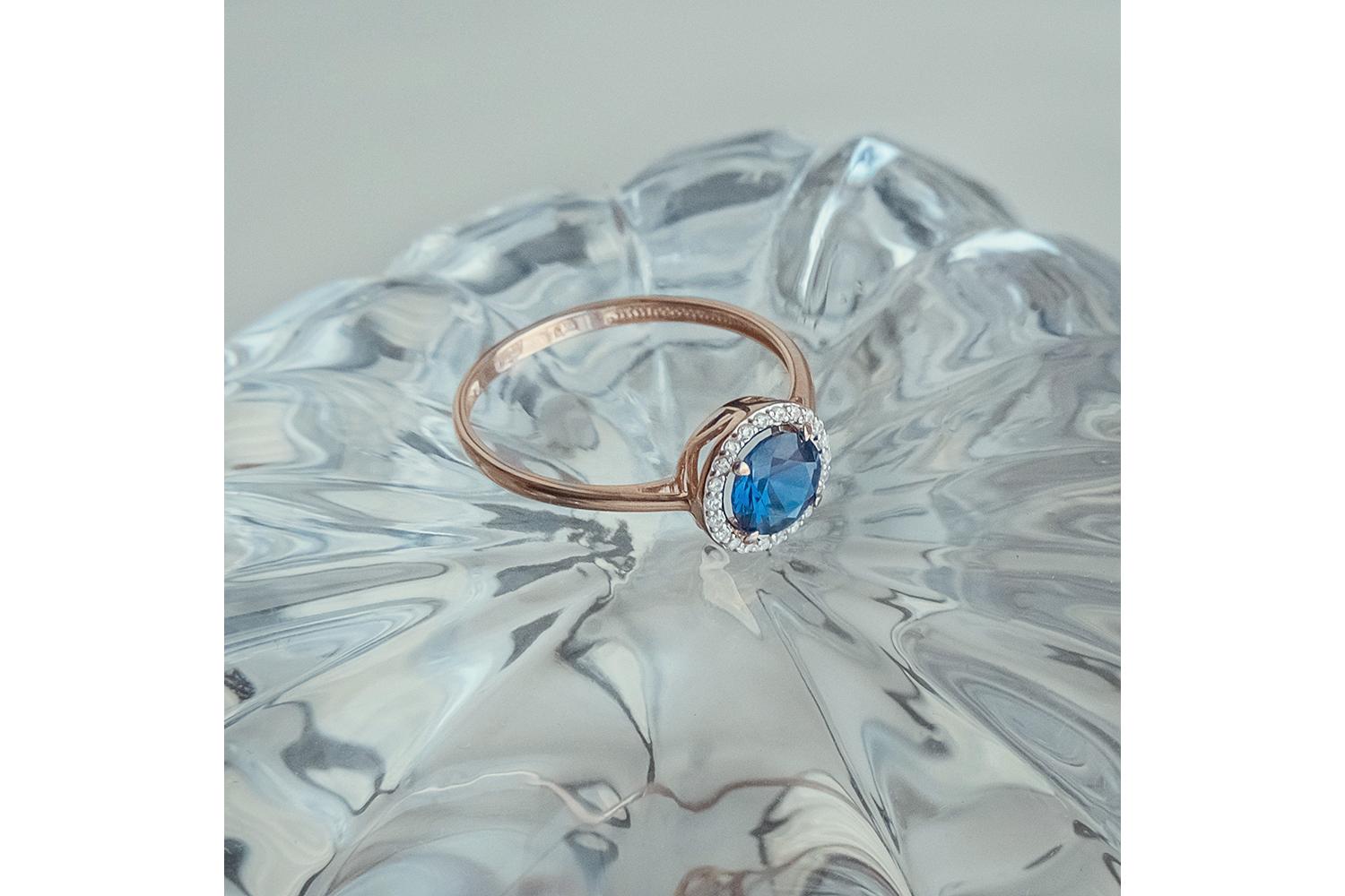 Фианит синий, количество 1 шт., огранка круг, размер 6 мм ; Фианит б/цв, количество 22 шт., огранка круг, размер 0,9 мм