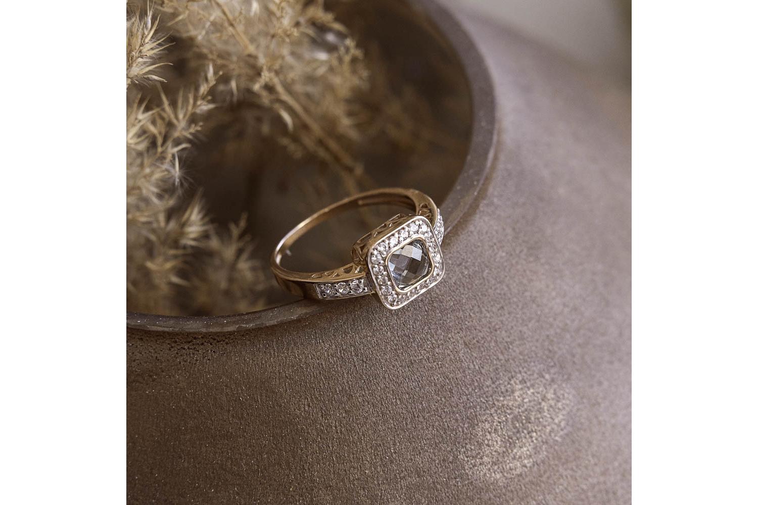Топаз Sky натуральный, количество 1 шт., огранка антик-бриолет, размер 6ˣ6 ; Фианит б/цв, количество 6 шт., огранка круг, размер 1,5 мм ; Фианит б/цв, количество 18 шт., огранка круг, размер 1,25 мм