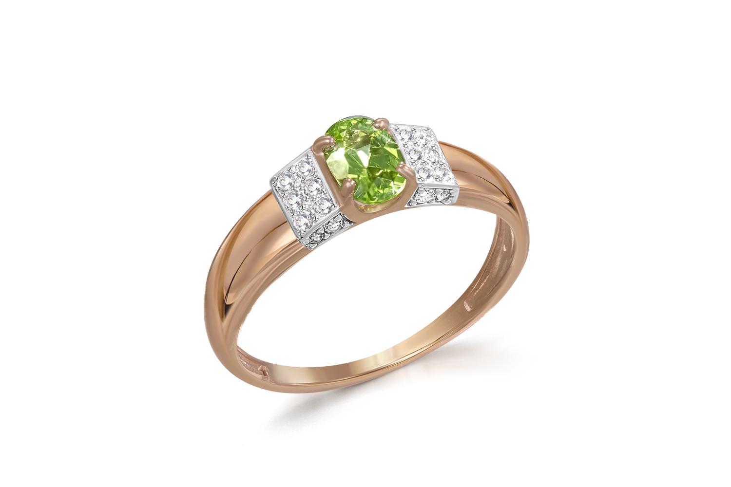 Мастера компании NEWGOLD, приложив всё свое мастерство и искусство, создали для Вас на нашем собственном производстве Кольцо из красного золота с хризолитом и 20 фианитами.