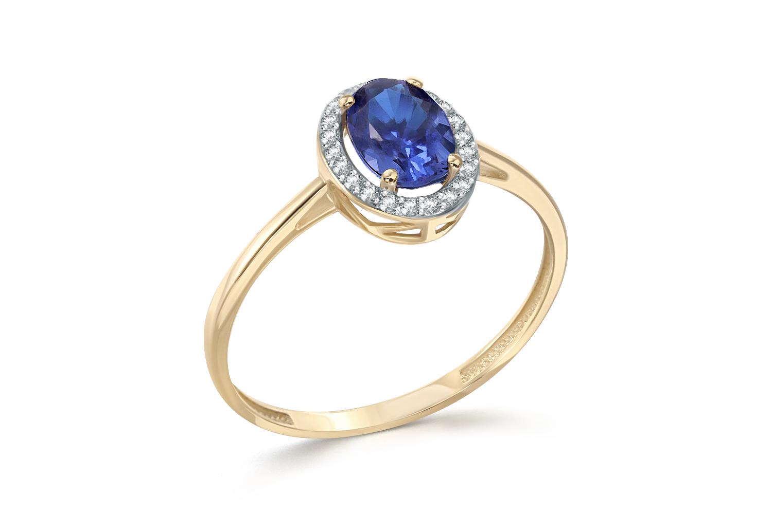 Фианит синий, количество 1 шт., огранка овал, размер 7ˣ5 ; Фианит б/цв, количество 22 шт., огранка круг, размер 0,9 мм