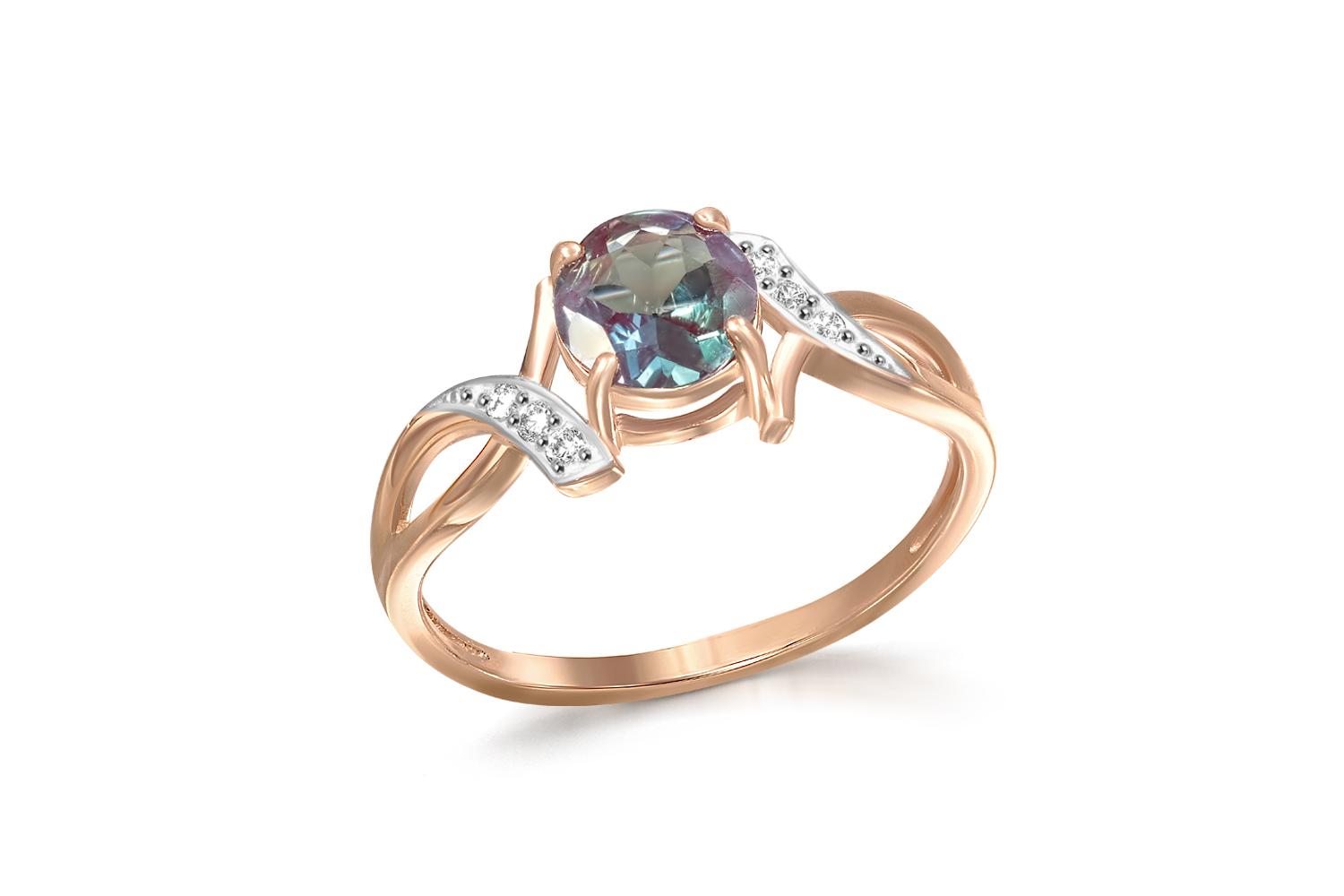 Мастера компании NEWGOLD, приложив всё свое мастерство и искусство, создали для Вас на нашем собственном производстве Кольцо из красного золота с александритом и 6 фианитами.