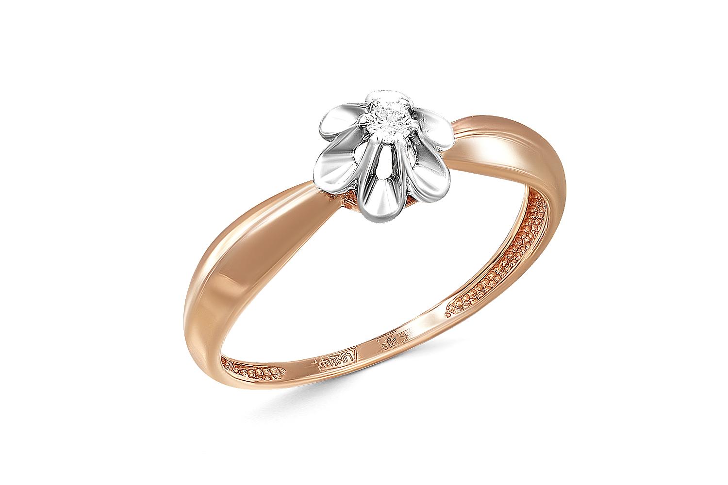 Мастера компании NEWGOLD, приложив всё свое мастерство и искусство, создали для Вас на нашем собственном производстве Кольцо Цветок из красного золота с бриллиантом.