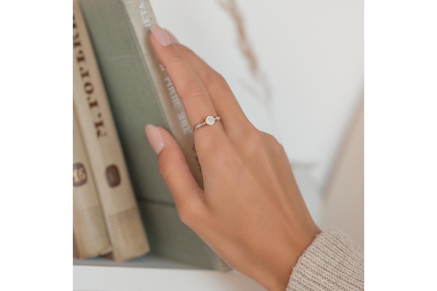 Мастера компании NEWGOLD, приложив всё свое мастерство и искусство, создали для Вас на нашем собственном производстве Кольцо из красного золота с опалом и 10 сапфирами.