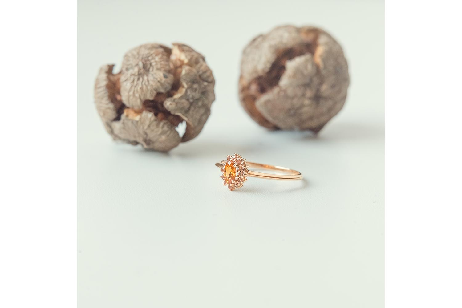 Мастера компании NEWGOLD, приложив всё свое мастерство и искусство, создали для Вас на нашем собственном производстве Кольцо из красного золота с спессартином и 12 сапфирами.