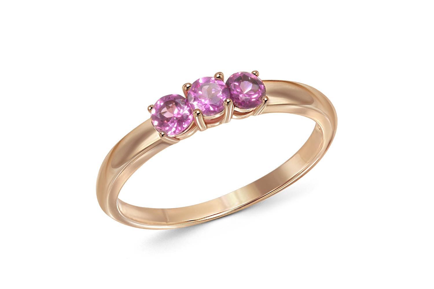 Мастера компании NEWGOLD, приложив всё свое мастерство и искусство, создали для Вас на нашем собственном производстве Кольцо из красного золота с 3 родолитами.