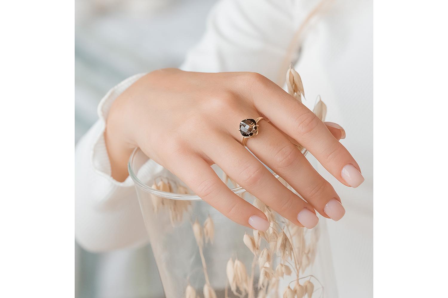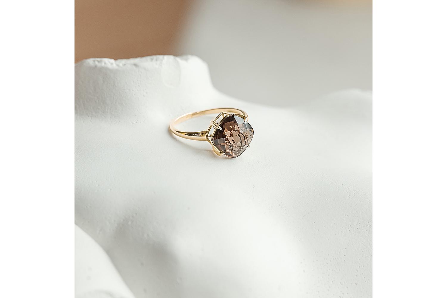 Закажите Кольцо из жёлтого золота с раухтопазом с получением в Москве через курьерскую службу доставки напрямую с нашего производственного склада завода NEWGOLD!