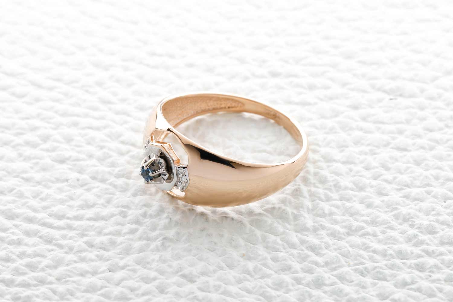 Мастера компании NEWGOLD, приложив всё свое мастерство и искусство, создали для Вас на нашем собственном производстве Кольцо из красного золота с сапфиром и 6 бриллиантами.