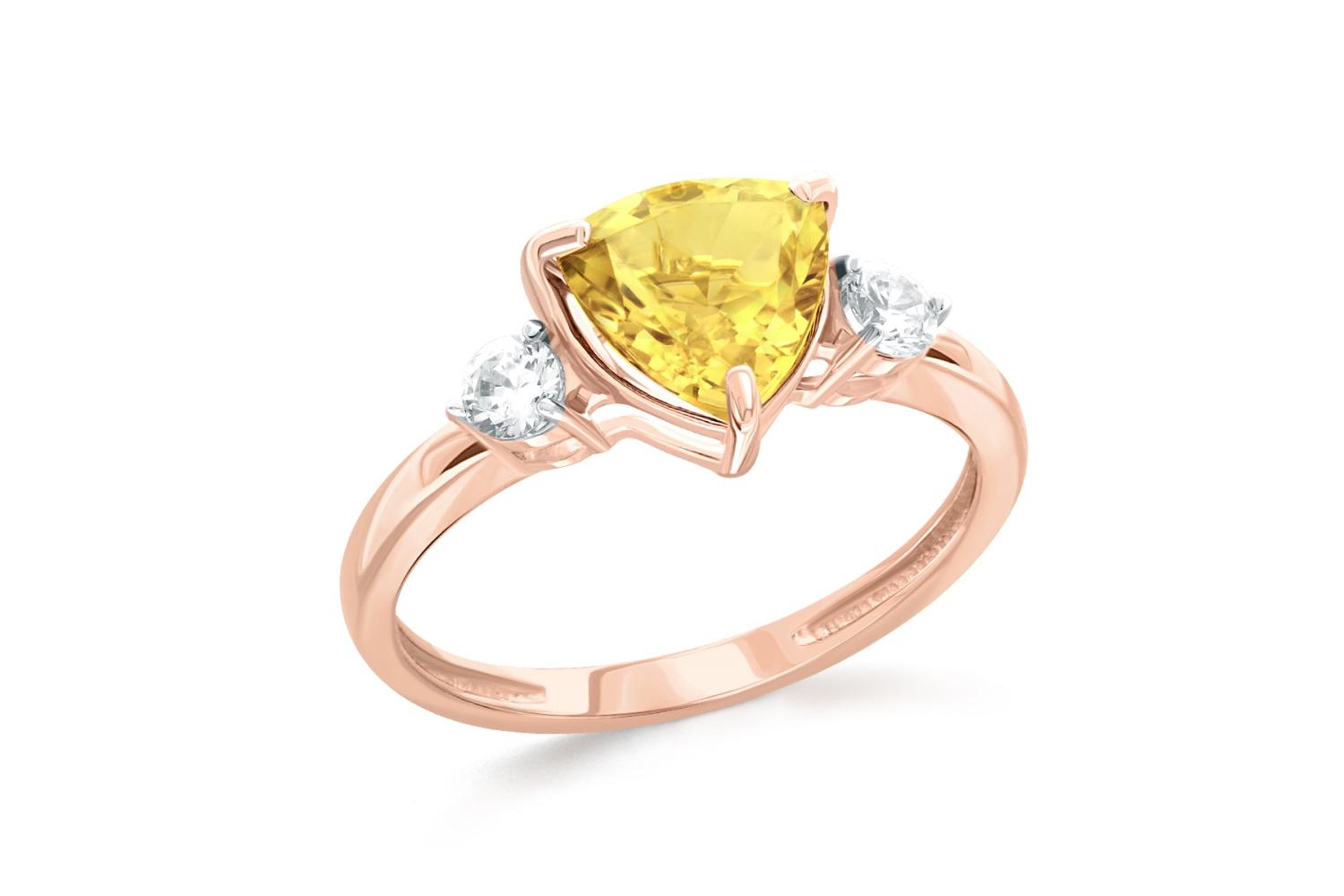 Фианит желтый, количество 1 шт., огранка триллион, размер 7ˣ7 ; Фианит б/цв, количество 2 шт., огранка круг, размер 2,75 мм