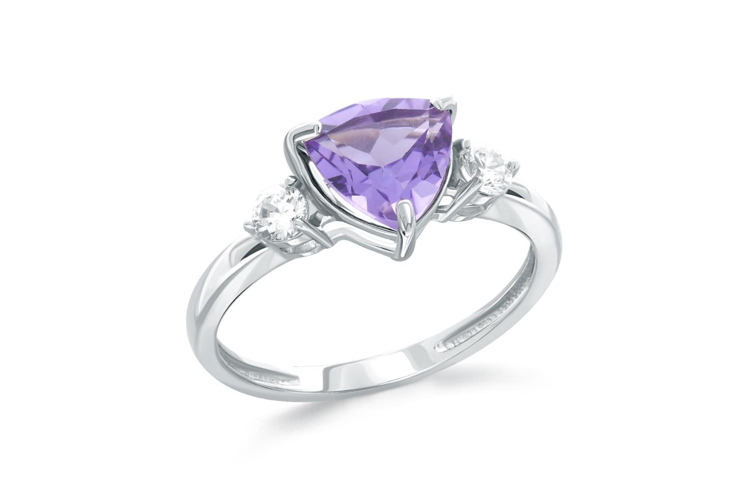 Аметист натуральный, количество 1 шт., огранка триллион, размер 7ˣ7 ; Фианит б/цв, количество 2 шт., огранка круг, размер 2,75 мм