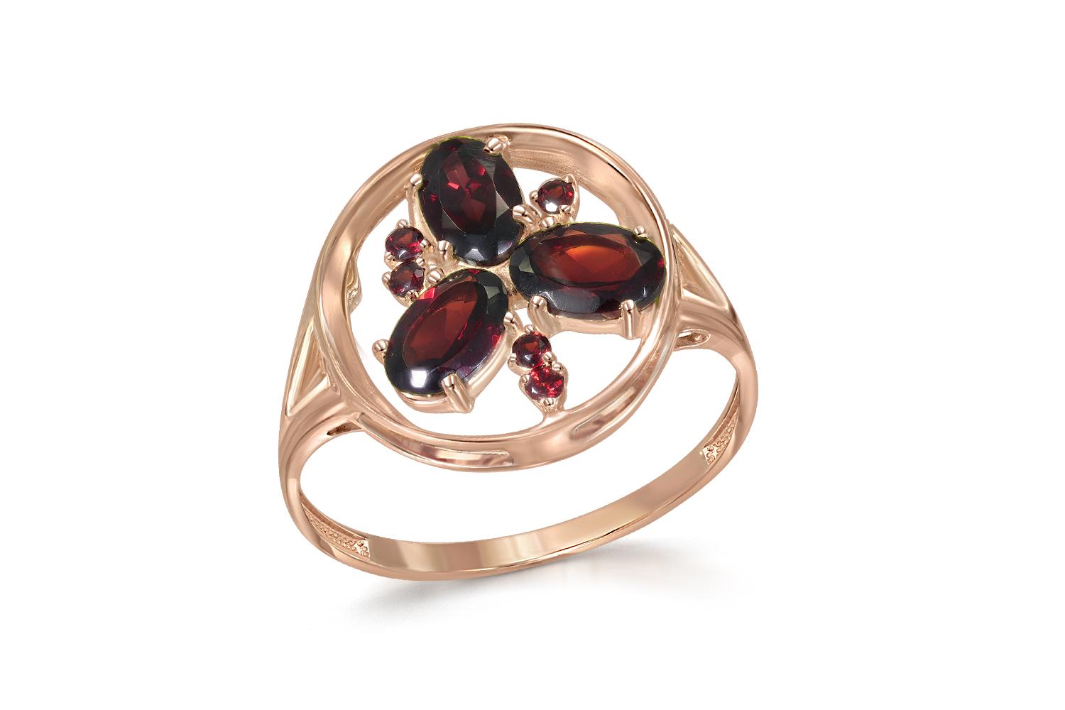 Мастера компании NEWGOLD, приложив всё свое мастерство и искусство, создали для Вас на нашем собственном производстве Кольцо из красного золота с 8 гранатами.