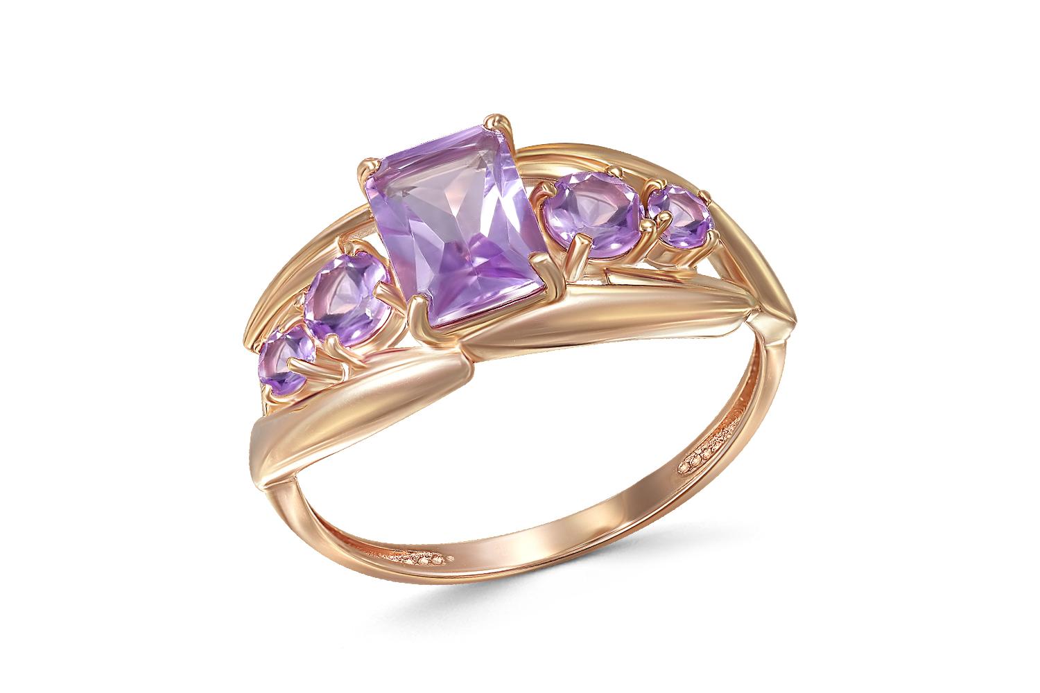 Мастера компании NEWGOLD, приложив всё свое мастерство и искусство, создали для Вас на нашем собственном производстве Кольцо из красного золота с 5 аметистами.