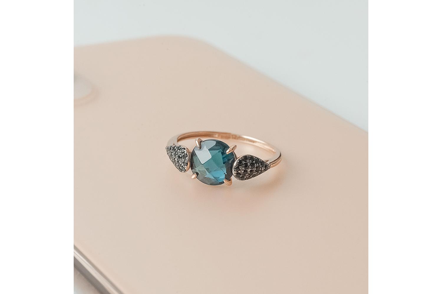 Мастера компании NEWGOLD, приложив всё свое мастерство и искусство, создали для Вас на нашем собственном производстве Кольцо из красного золота с кварцем и 34 фианитами.