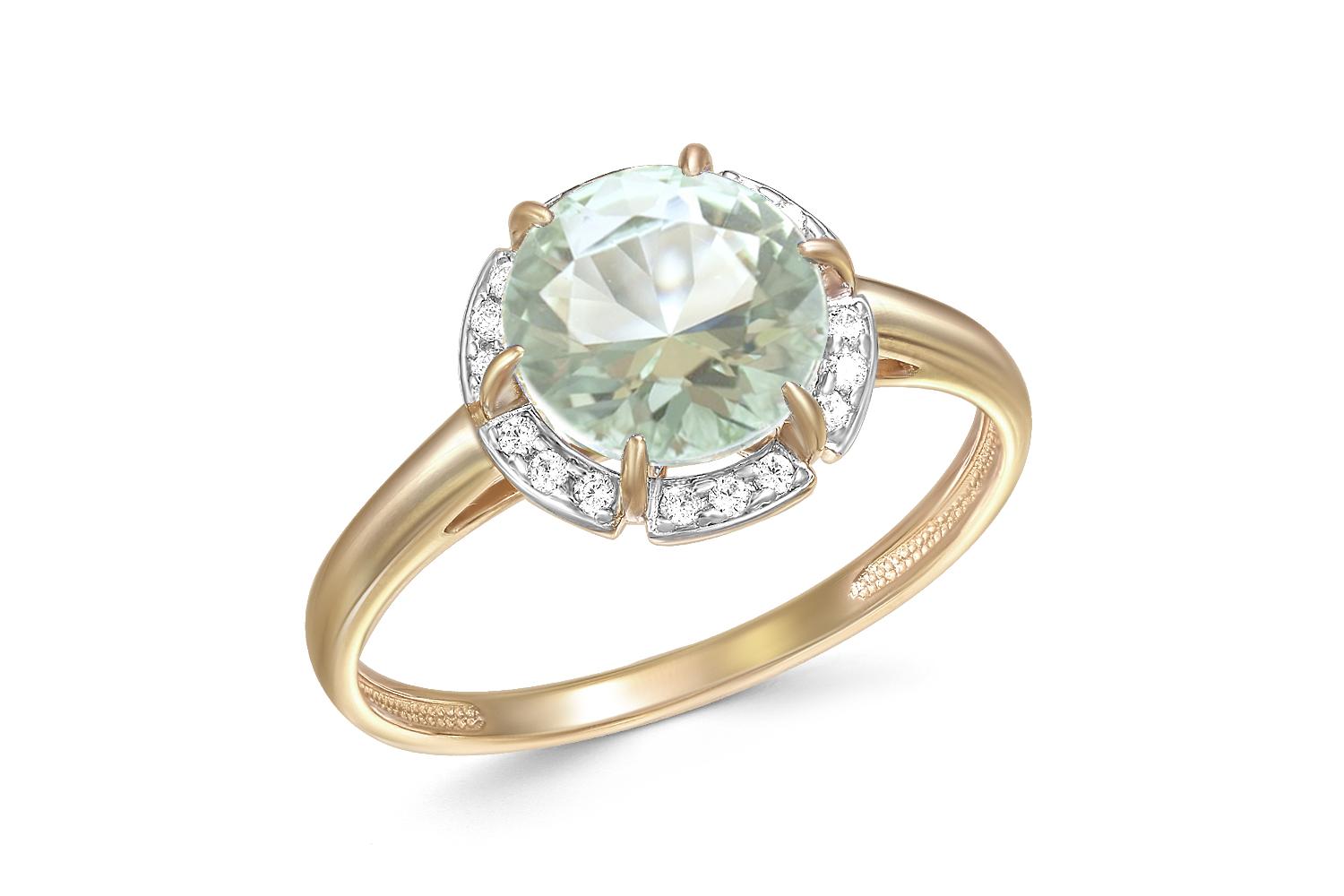 Аметист зеленый натуральный, количество 1 шт., огранка круг, размер 8 мм ; Фианит б/цв, количество 18 шт., огранка круг, размер 0,9 мм