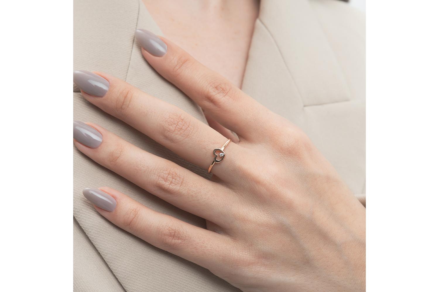 Мастера компании NEWGOLD, приложив всё свое мастерство и искусство, создали для Вас на нашем собственном производстве Кольцо Сердце из красного золота с фианитом.