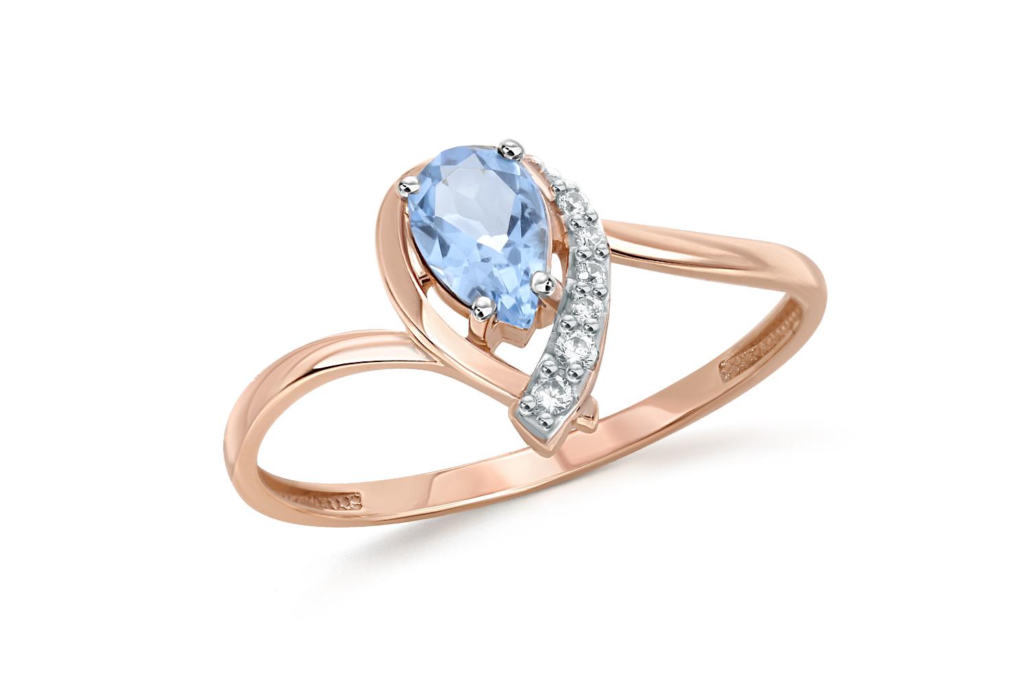 Кольцо с топазом sky и 6 фианитами изготовлено из красного золота 585 пробы. Топаз Sky - это самоцвет нежно-голубого цвета, который очень редко встречается в природе. Считается, что голубые топазы привлекают новых друзей, делают владельца украшения более общительным и помогают наладить коммуникацию в незнакомом обществе Изысканный дизайн кольца подчеркнет вашу утонченность и элегантность. Это кольцо идеально подойдет для любого образа и станет прекрасным дополнением к вашей коллекции ювелирных украшений.