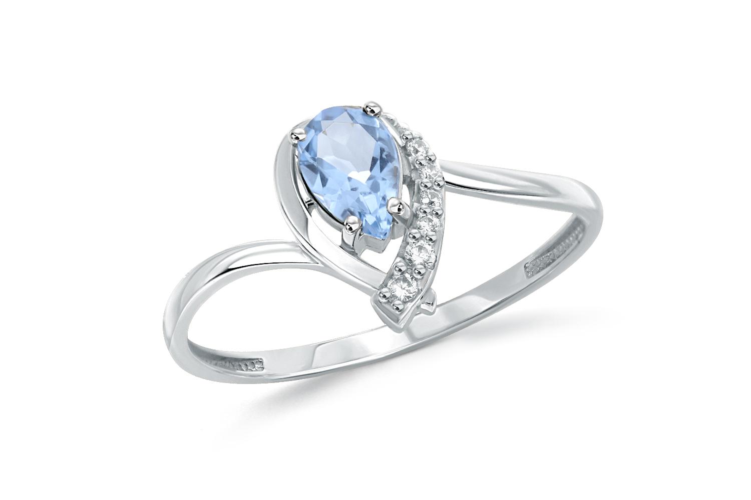 Топаз Sky натуральный, количество 1 шт., огранка груша, размер 6ˣ4 ; Фианит б/цв, количество 2 шт., огранка круг, размер 1,25 мм ; Фианит б/цв, количество 4 шт., огранка круг, размер 1 мм