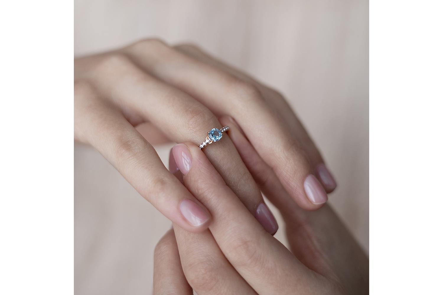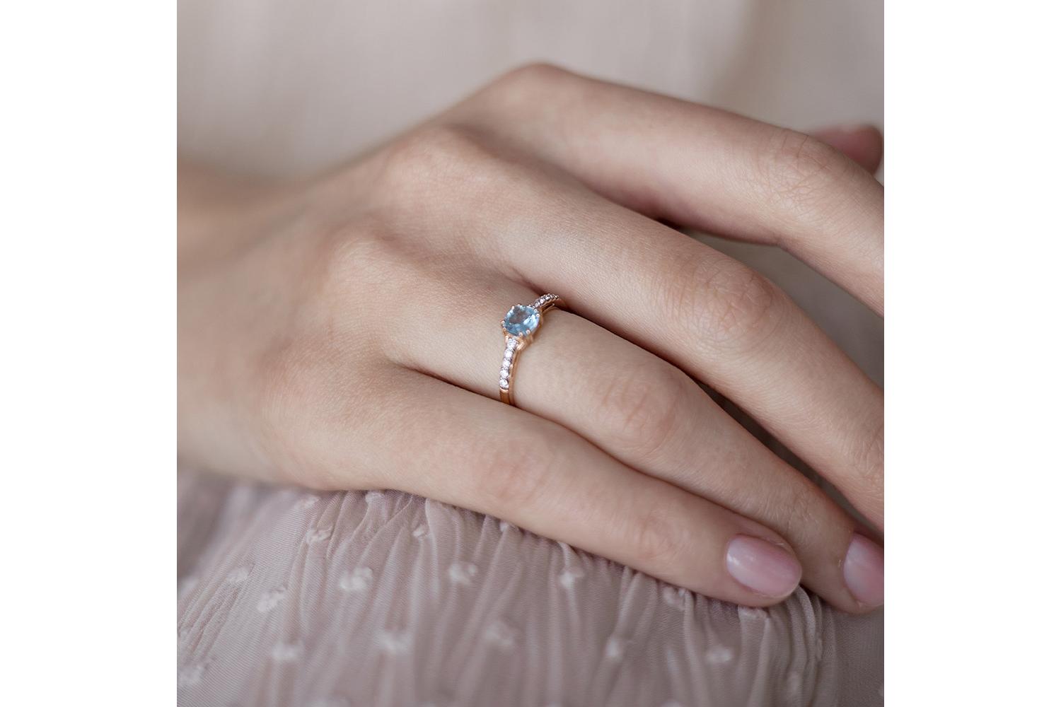 Мастера компании NEWGOLD, приложив всё свое мастерство и искусство, создали для Вас на нашем собственном производстве Кольцо из красного золота с топазом swiss и 10 фианитами.