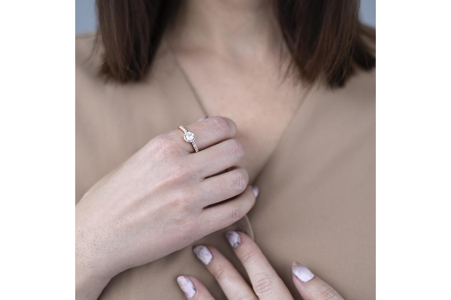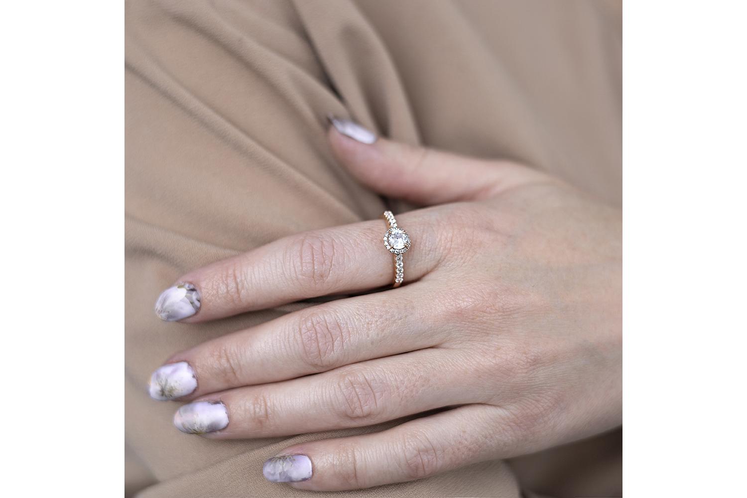 Шикарное кольцо с 27 фианитами, изготовленное из высококачественного красного золота 585-й пробы. Используется частичное родиевое покрытие. Это делается для придания украшениям блеска. Родиевое покрытие надолго сохраняет блеск украшения.