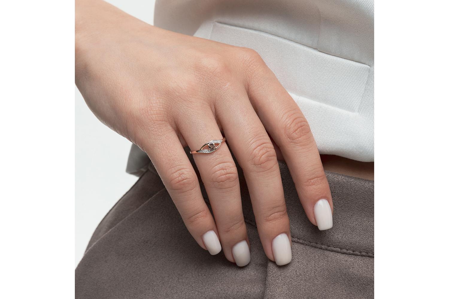 Мастера компании NEWGOLD, приложив всё свое мастерство и искусство, создали для Вас на нашем собственном производстве Кольцо из красного золота с раухтопазом и 8 фианитами.